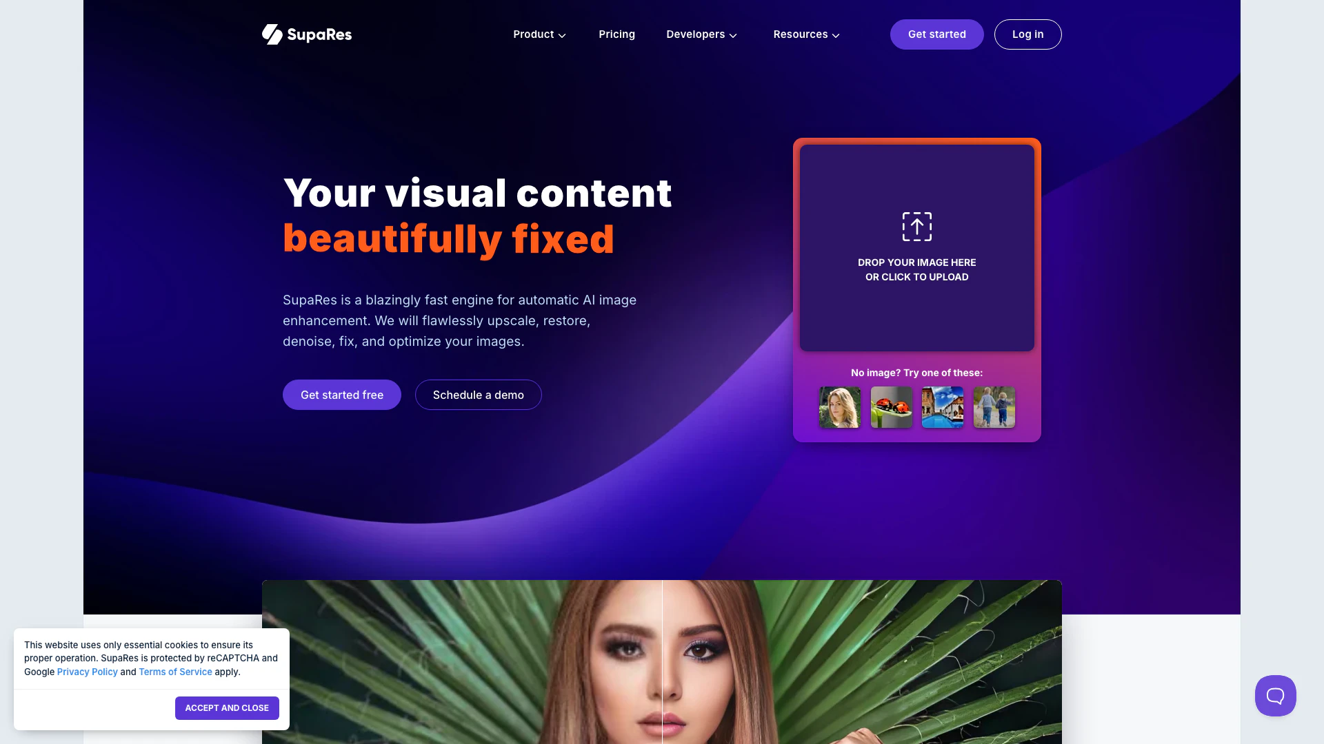 SupaRes is a cutting-edge AI-powered image enhancement tool designed to automatically upscale, restore, denoise, fix, and optimize images with remarkable speed and accuracy. This platform utilizes advanced algorithms to transform low-quality images into high-resolution visuals, making it an ideal solution for various industries, including web design, real estate, marketing, and publishing. With its user-friendly interface and powerful capabilities, SupaRes ensures that users can achieve professional-quality images in just seconds.
