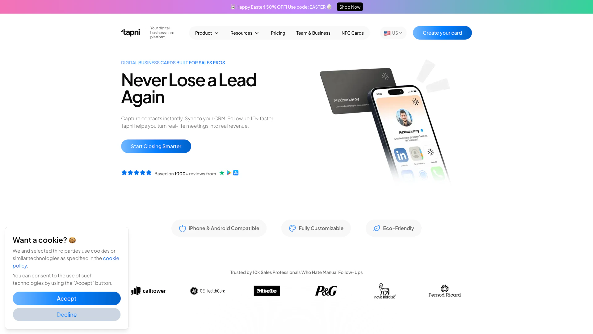 - Seamless CRM Integration: Tapni integrates with major CRMs like Salesforce and HubSpot, allowing for automatic syncing of leads and reducing manual data entry.
