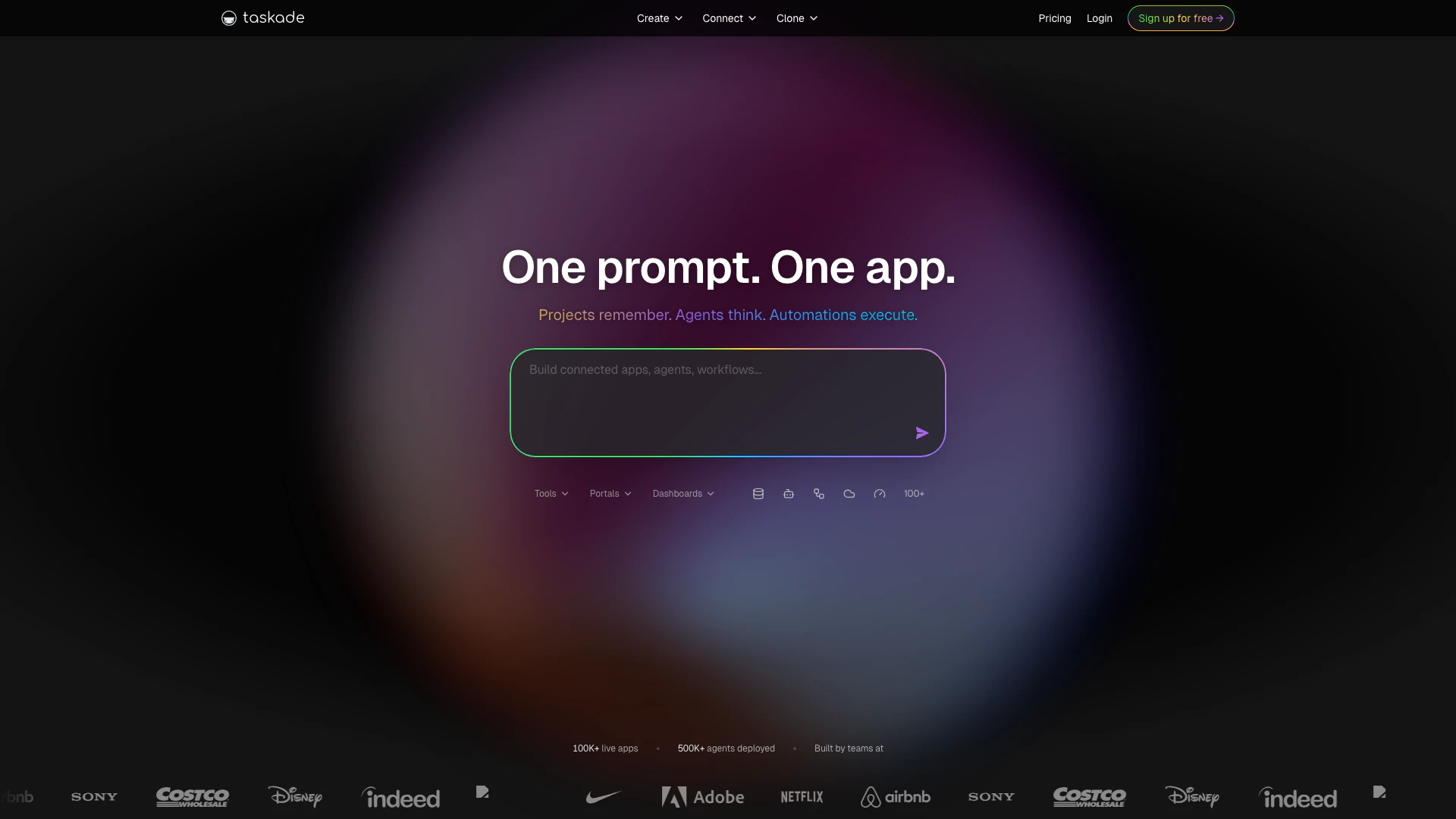 Taskade is the fastest way to turn ideas into living, intelligent software. With just one prompt, Taskade Genesis builds AI-powered apps — connected to your projects, agents, and automations — all inside a unified workspace that thinks and works with you. No templates. No coding. No setup. Just real-time apps that plan, act, and evolve.