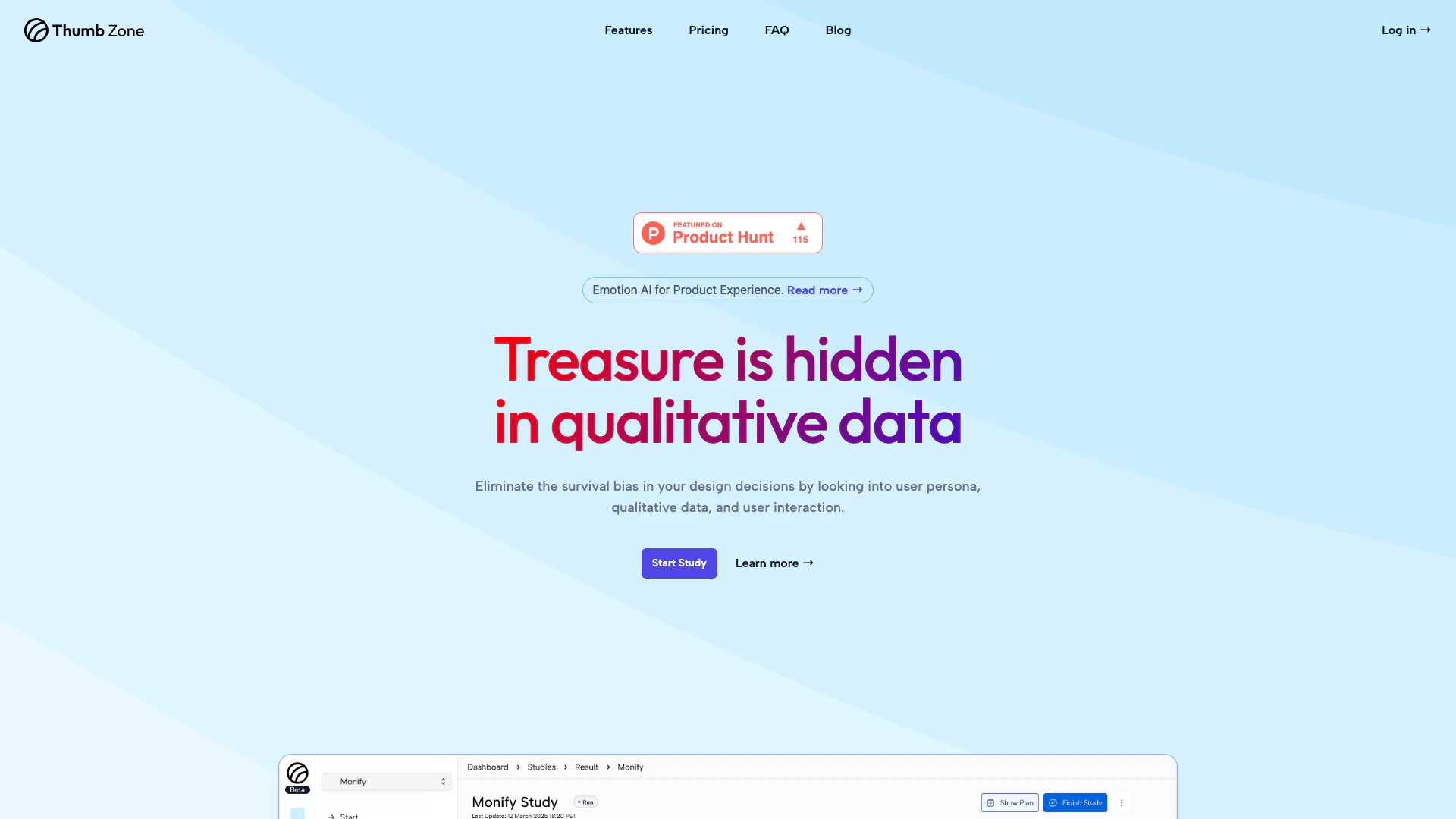 Thumbzoneai is an innovative Emotion AI tool designed to enhance user testing and product experience. By focusing on qualitative data and user interactions, Thumbzoneai helps eliminate survival bias in design decisions. The platform enables researchers and designers to gain deeper insights into user personas, emotions, and interactions, ultimately leading to smarter design choices. With a suite of features that include UX predictions and emotion analysis, Thumbzoneai reshapes how user testing is conducted, making it more efficient and insightful.