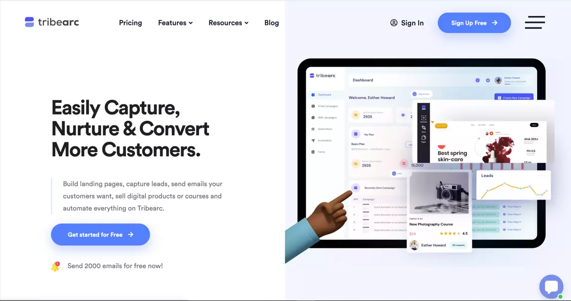 - User-Friendly Design: Tribearc allows users to build landing pages with a drag-and-drop interface, making it easy for anyone to create effective marketing pages.