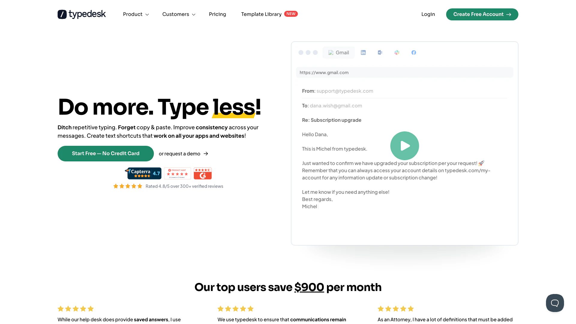 - Fast Performance: Typedesk supports fast searching, customizing, and inserting templates using keyboard shortcuts, enhancing productivity.