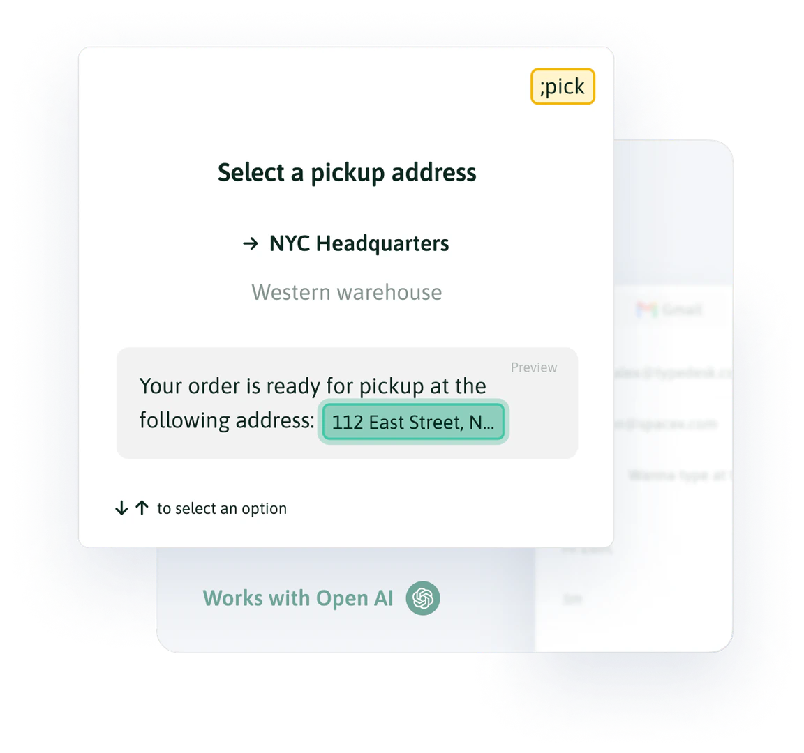 - Document Preparation: Use Typedesk to insert frequently used information into contracts, proposals, or legal documents, ensuring accuracy and saving time.