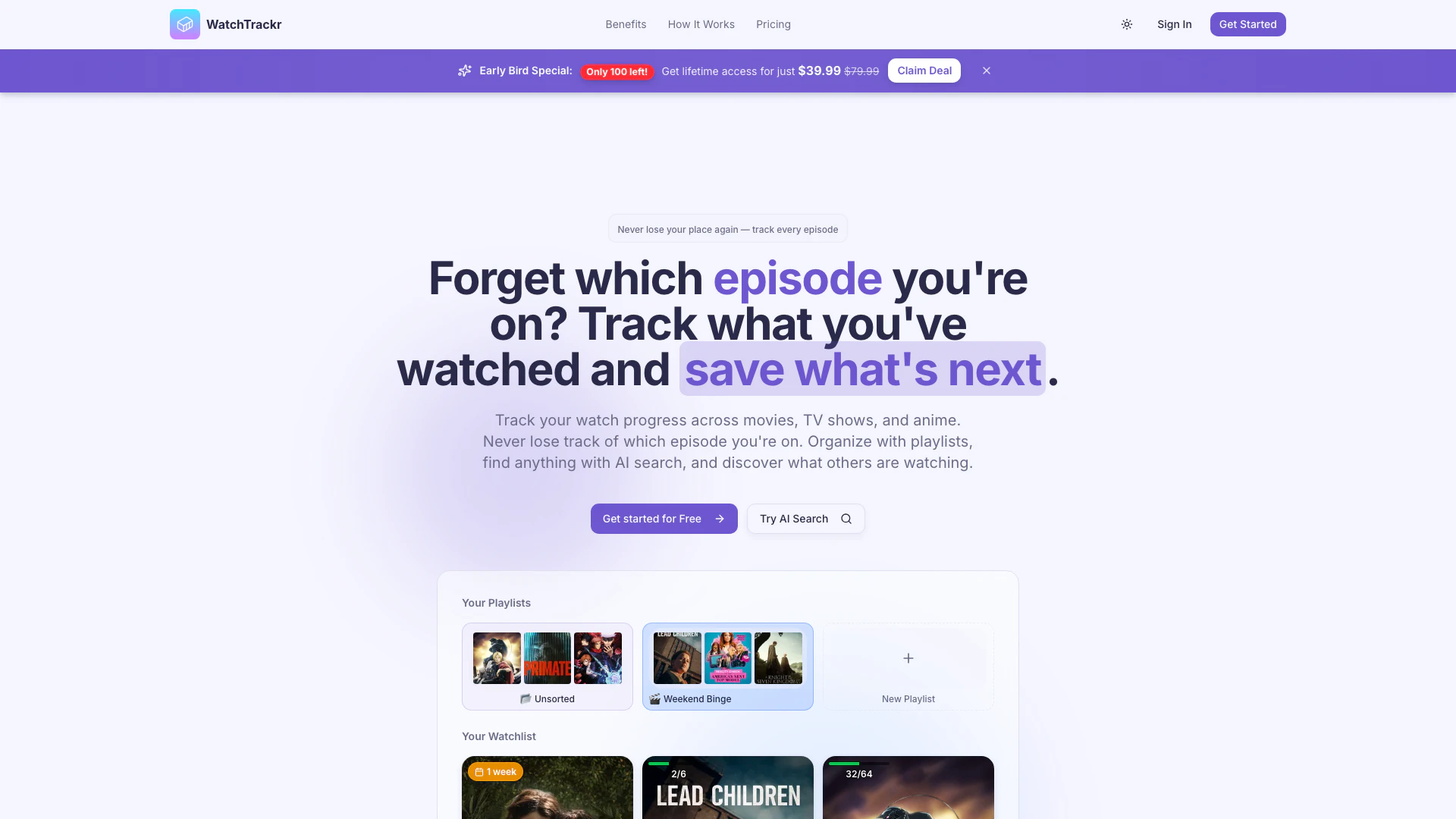 Watchtrackr is ideal for movie and TV enthusiasts who want to streamline their viewing experience. It caters to individuals who enjoy keeping track of multiple shows and films, including anime fans. The tool is especially useful for those who often forget where they left off in a series or want to discover new content based on community trends. Whether you're a casual viewer or a binge-watcher, Watchtrackr provides the organization and discovery features you need.