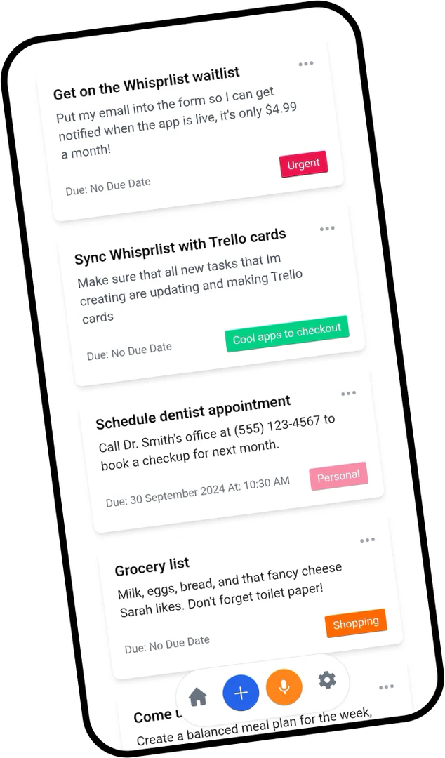 - Daily Task Management: Use Whisprlist to create and organize daily tasks effortlessly by speaking them into the app.