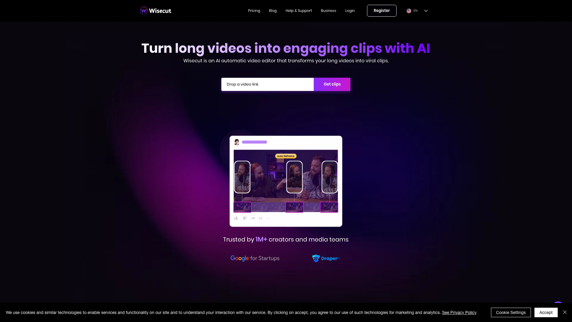 Wisecut is an AI automatic video editor that transforms your long videos into viral clips, making it easy to create engaging content for platforms like Instagram Reels, YouTube Shorts, and TikTok.