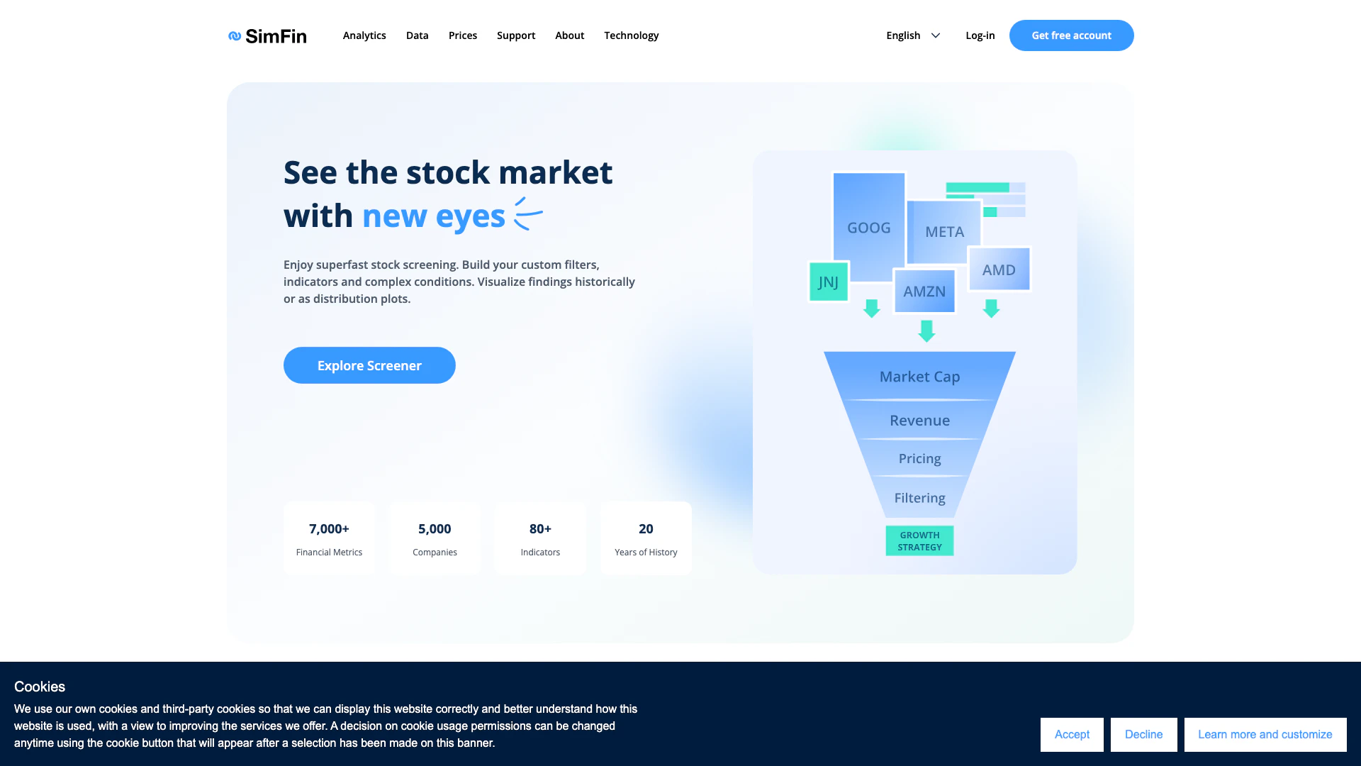 AI For Finance,由 SimFin 開發,是一款先進的金融分析工具,旨在增強市場分析和投資策略。它為用戶提供超過 5,000 支股票的龐大金融數據庫,讓分析師和投資者能夠根據涵蓋 20 年的全面歷史數據來優化他們的策略。該平台提供強大的篩選能力、回測選項和數據下載功能,成為精明分析師提升投資水平的可靠選擇。