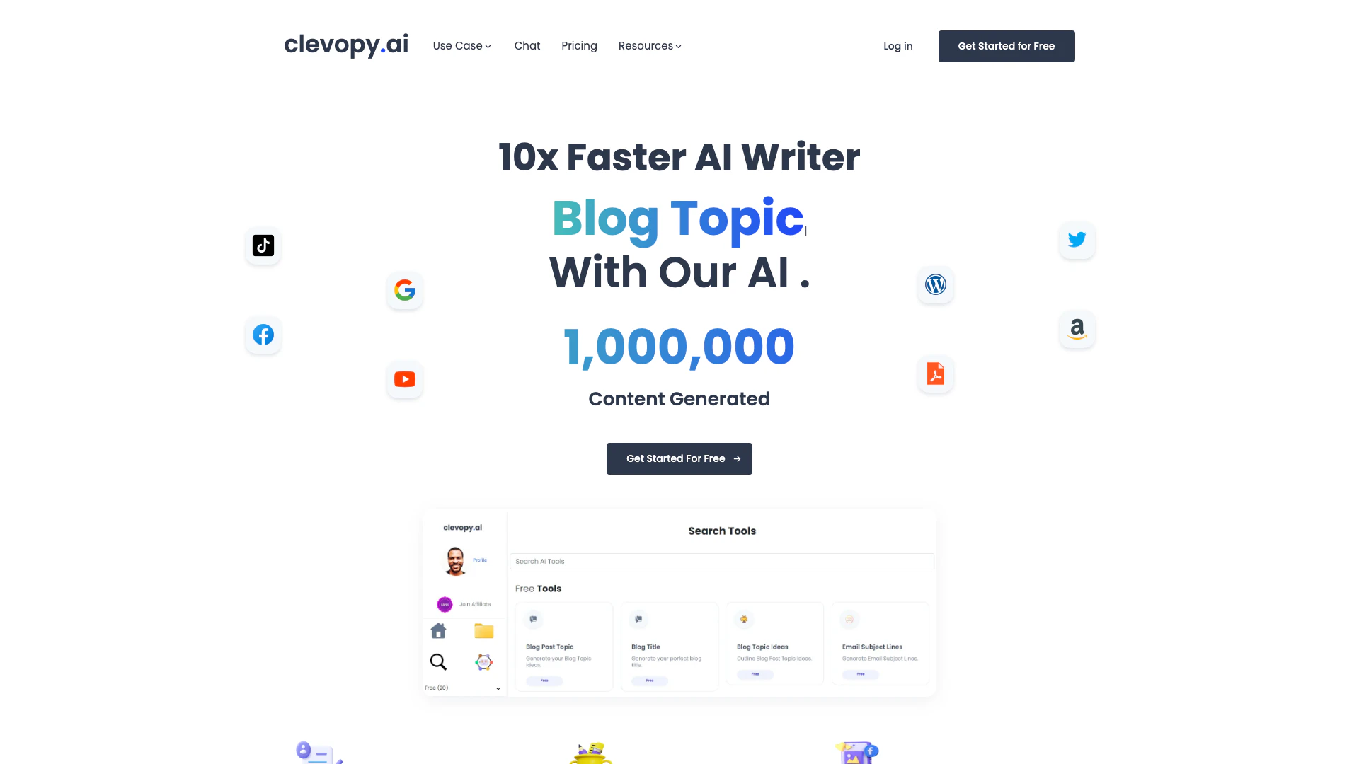 Clevopy.ai 提供多種功能,包括部落格文章寫作、文字轉圖像生成、廣告標題創建、評論寫作、影片主題生成等。