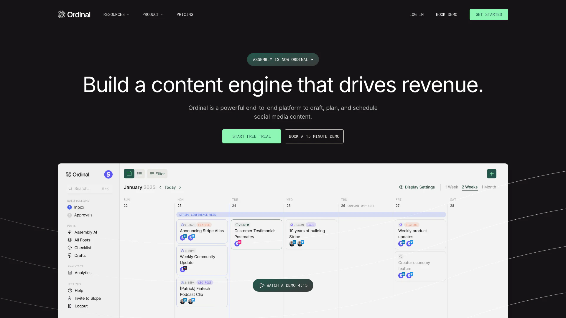 - 全面的社交媒體管理: Ordinal提供一個一體化平台,用於在多個社交媒體渠道(包括LinkedIn、Twitter、Instagram等)上草擬、規劃和安排內容。