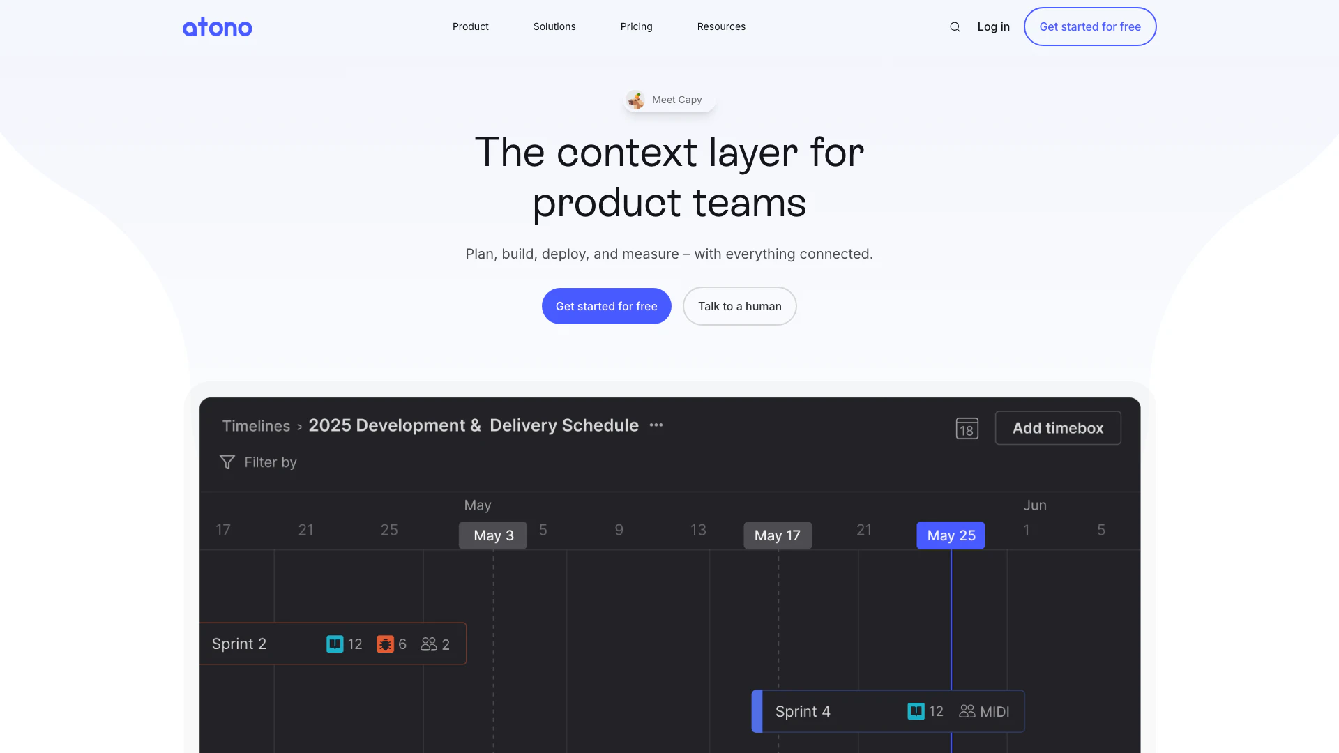 Atono 專為產品團隊量身定制,包括產品經理、工程師和工程領導者。它特別適合希望加強跨功能協作、簡化產品開發流程並保持從規劃到交付和測量的持續信息流的組織。需要統一平台來管理產品生命周期的團隊將會發現 Atono 是不可或缺的。