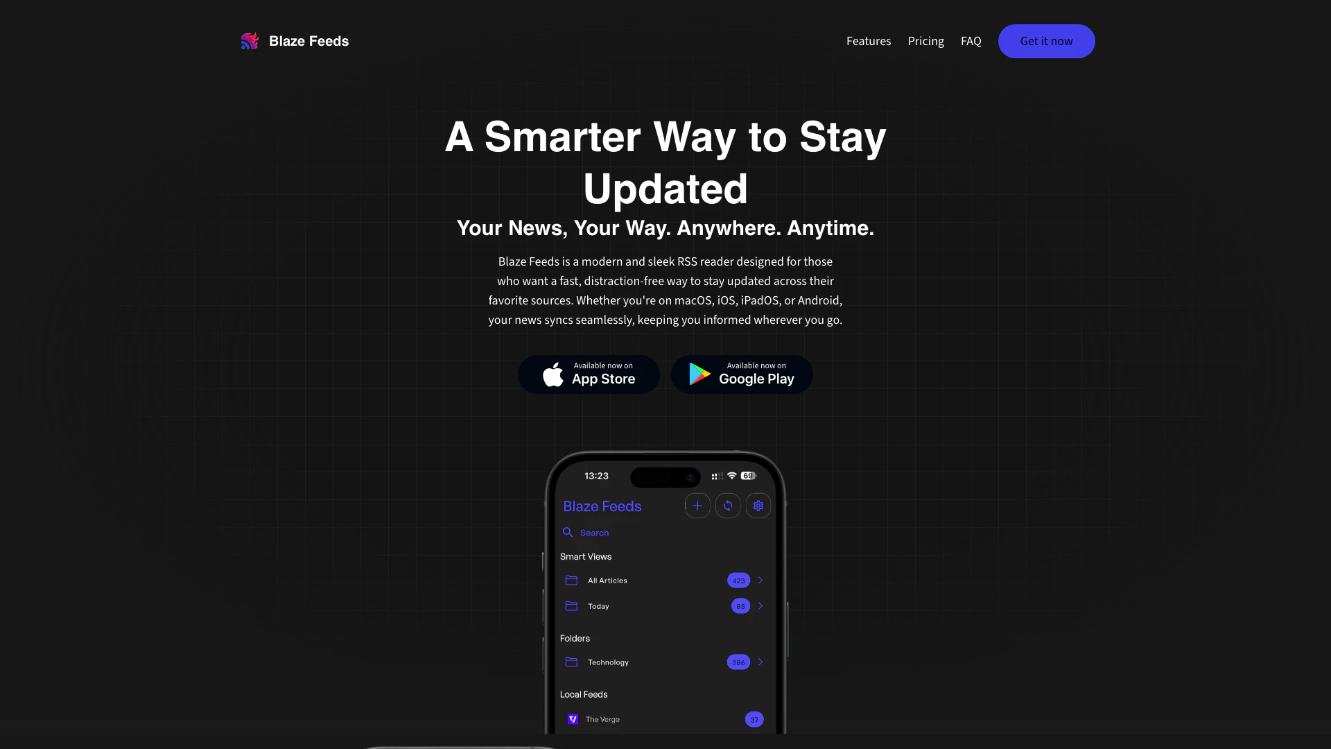 Blaze Feeds 是為任何想要簡化和高效消費新聞的人設計的。非常適合忙碌的專業人士、學生和熱愛閱讀的人,這個工具迎合了那些欣賞無干擾閱讀環境的用戶。支持包括 macOS、iOS、iPadOS 和 Android 在內的多個平台,使用者可以隨時隨地保持信息靈通。此外,重視隱私和數據安全的個體會發現 Blaze Feeds 特別吸引人,因為它提供無廣告的體驗而不妥協用戶數據。
