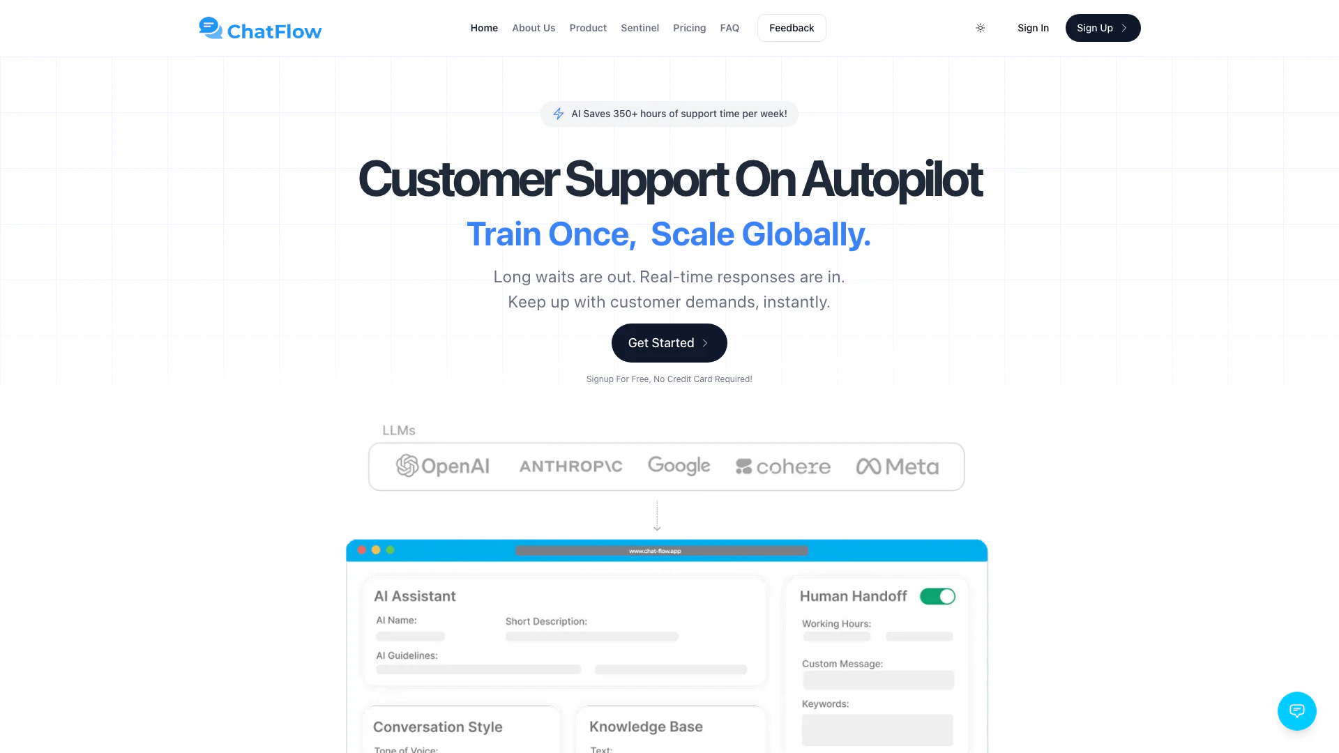 - 24/7 客戶支持: ChatFlow 提供 AI 驅動的聊天機器人,全天候 24/7 提供即時客戶支持,確保客戶詢問能夠立即得到回覆。