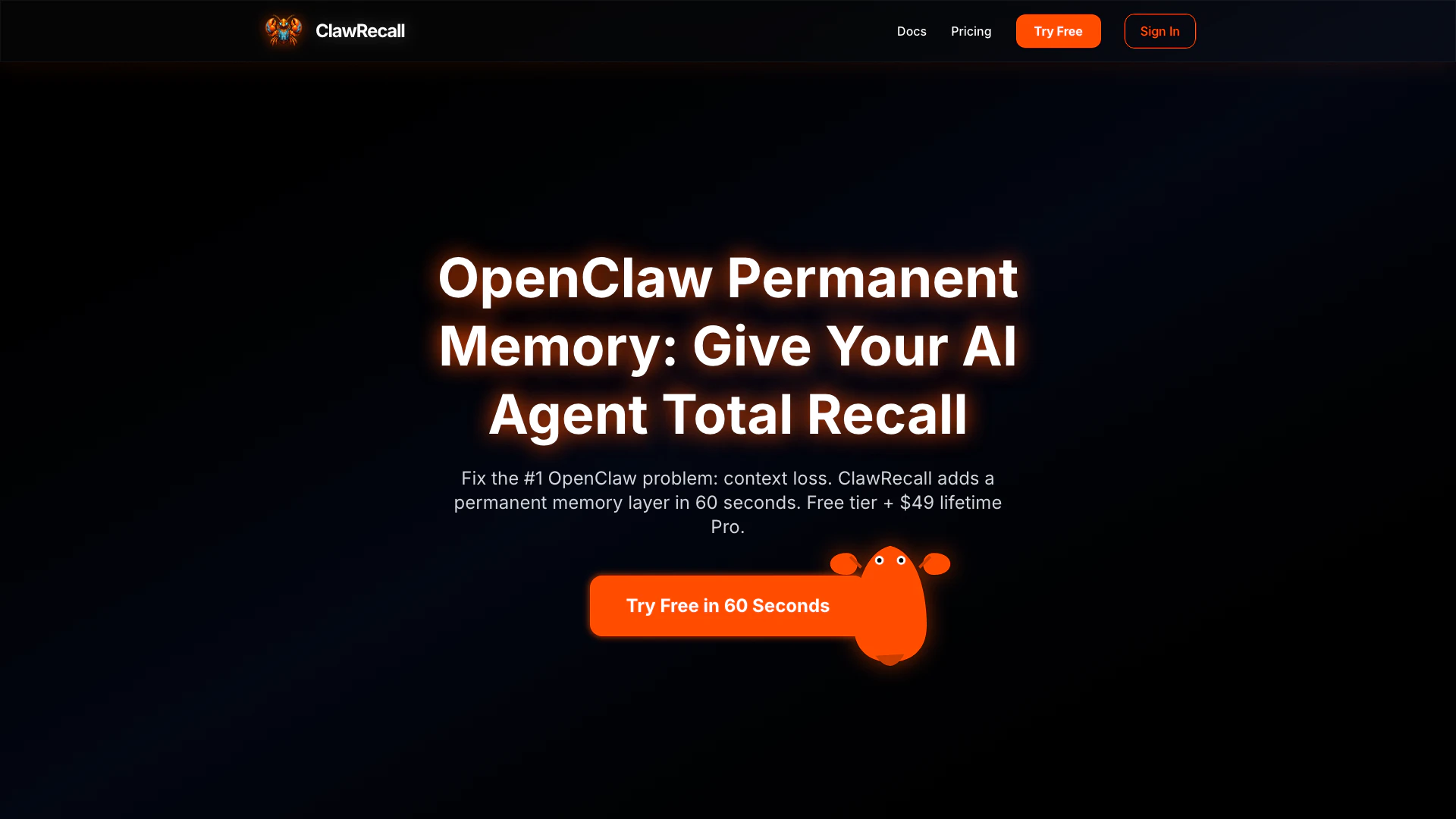 - 實惠的定價: Clawrecall 提供免費套餐和一次性支付 49 美元的專業版,為尋求永久記憶的用戶提供了具有成本效益的解決方案。