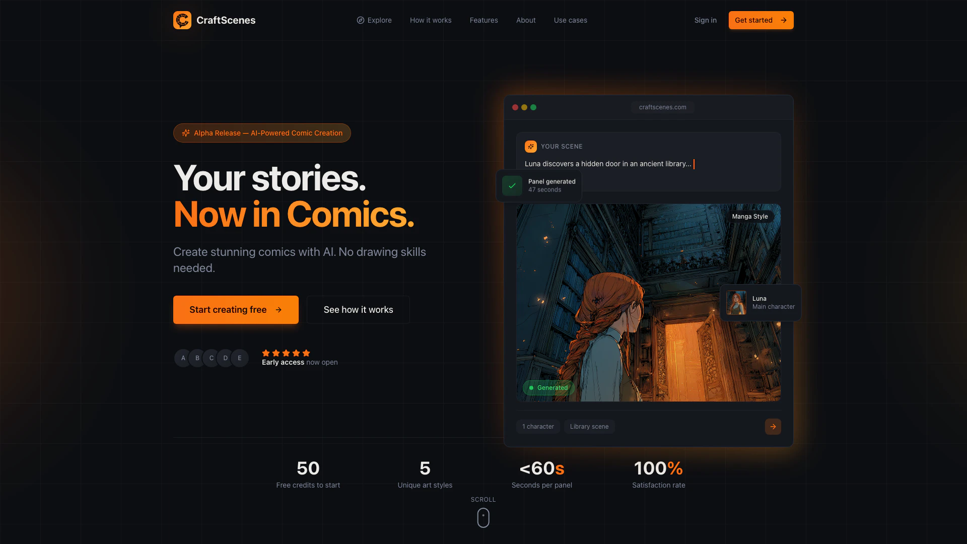 Craftscenes旨在為各種用戶設計,包括希望為孩子創建個性化睡前故事的父母,想要將小說中的場景可視化的作家,旨在為社交媒體創造引人注目的漫畫風格材料的內容創作者,以及任何希望將其想像力轉化為視覺故事的創意者,而無需藝術技能。