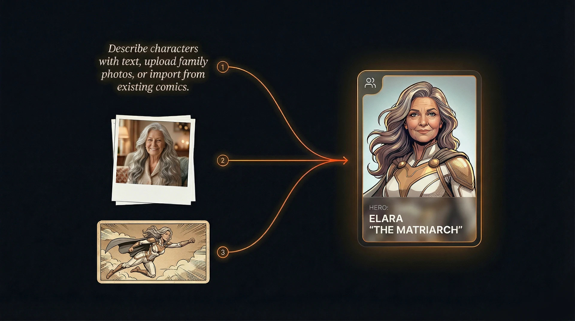 - 創建角色:首先通過文本描述角色,上傳家庭照片或從現有漫畫中導入。