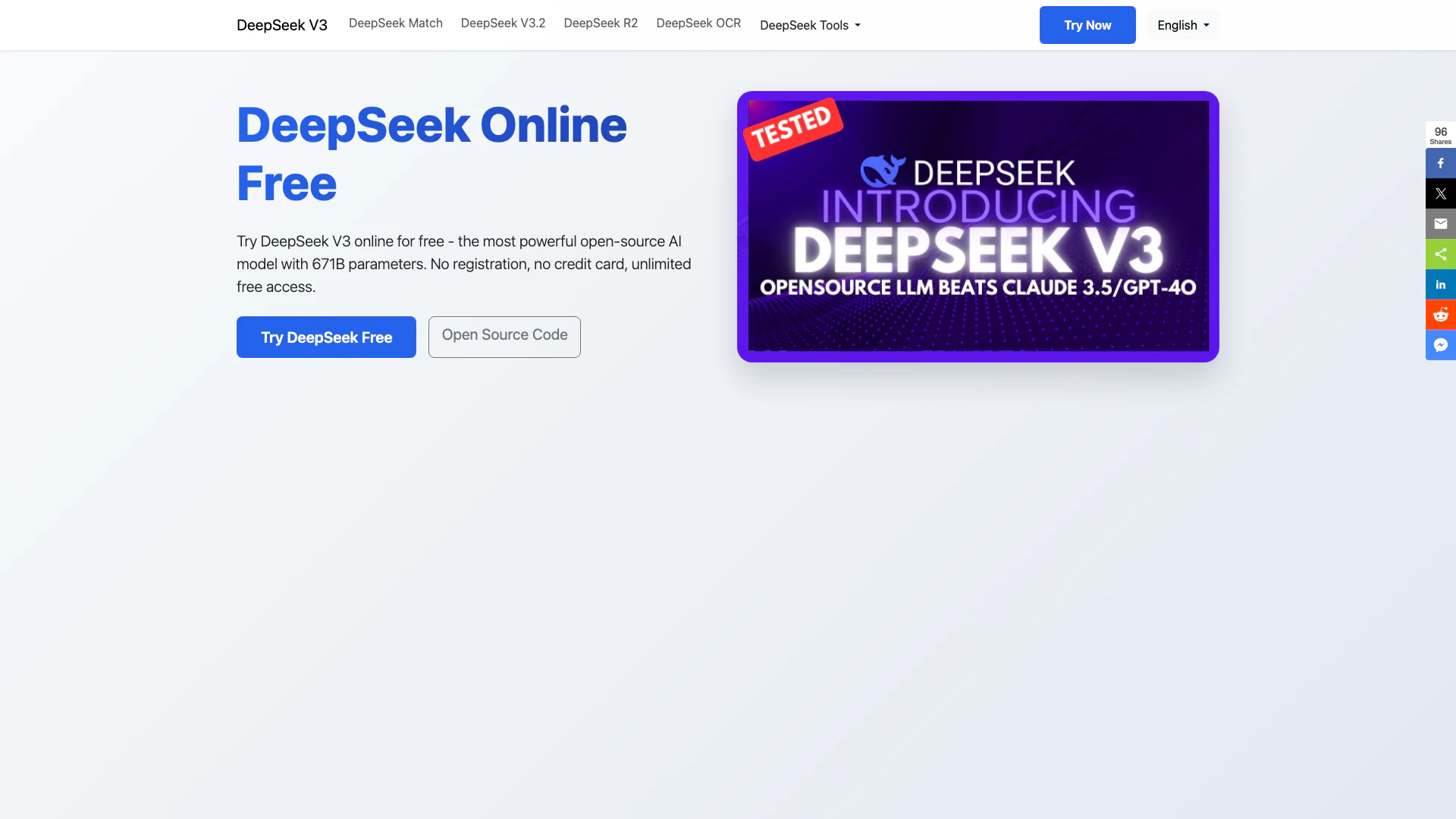 - 訪問 DeepSeek V3 網站 https://www.deepseekv3.net/。
