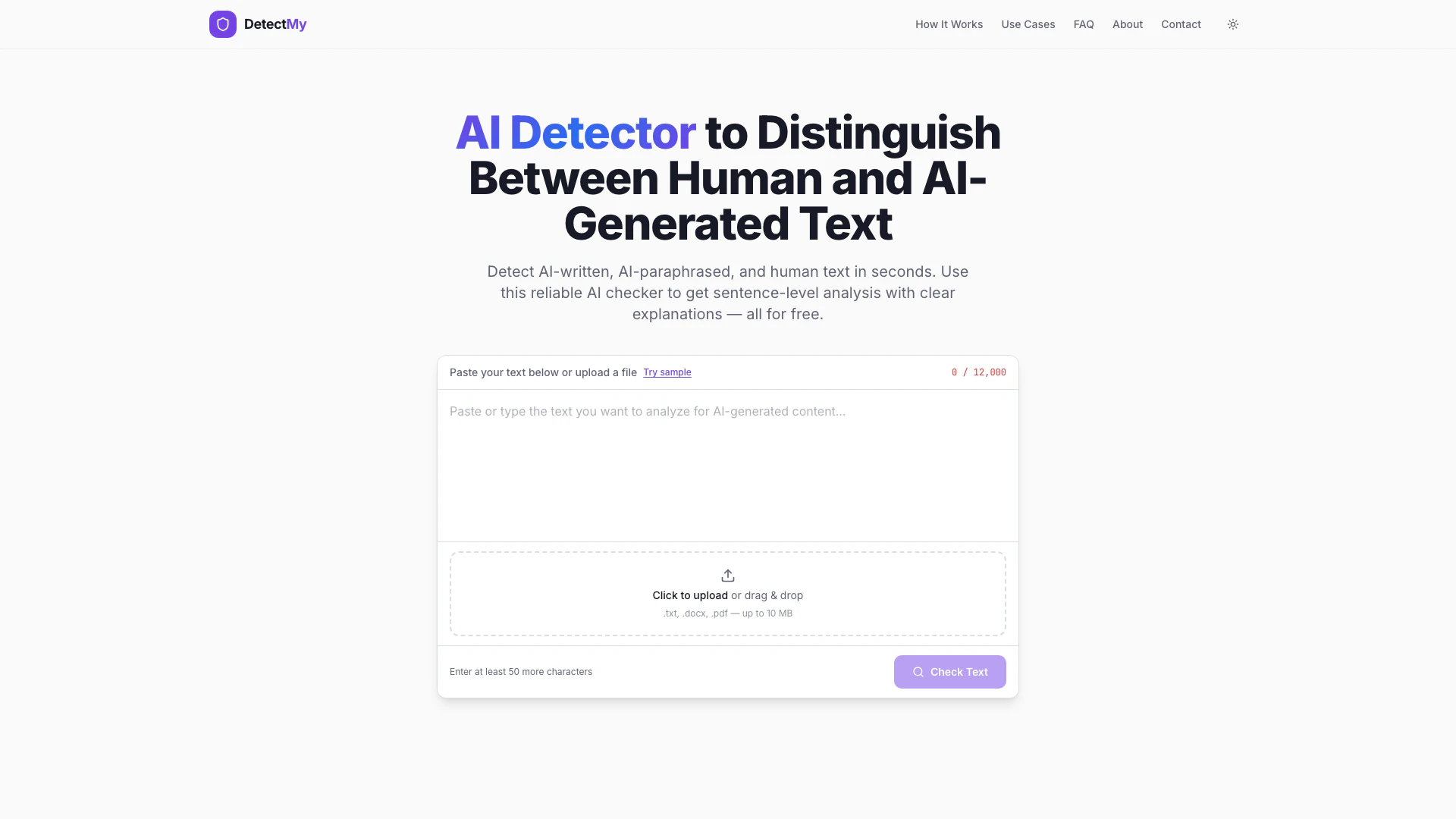 DetectMyAI 設計適合各類用戶,包括: - 學生和學者:希望在提交前驗證其寫作的真實性的人,特別是如果在撰寫過程中使用了 AI 工具。 - 教育工作者和機構:希望通過識別學生提交中的 AI 生成內容來促進學術誠信的教師和教育機構。 - 出版商和內容團隊:需要與其受眾保持信任並確保發佈材料的原創性的內容創作者和編輯團隊。 - 企業和專業人士:希望確保其溝通反映真實人類專業知識並保持品牌真實性的市場營銷團隊和商業專業人士。