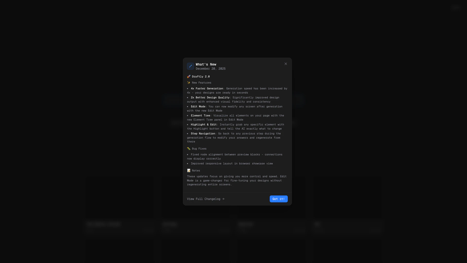 - AI驅動的設計: 利用AI技術,Draftly生成美觀、可投入生產的介面,確保高品質的設計。