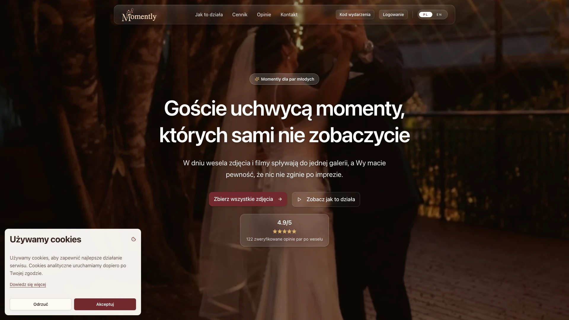 最新價格信息,請訪問此連結: https://momently.events/pl/wedding#pricing