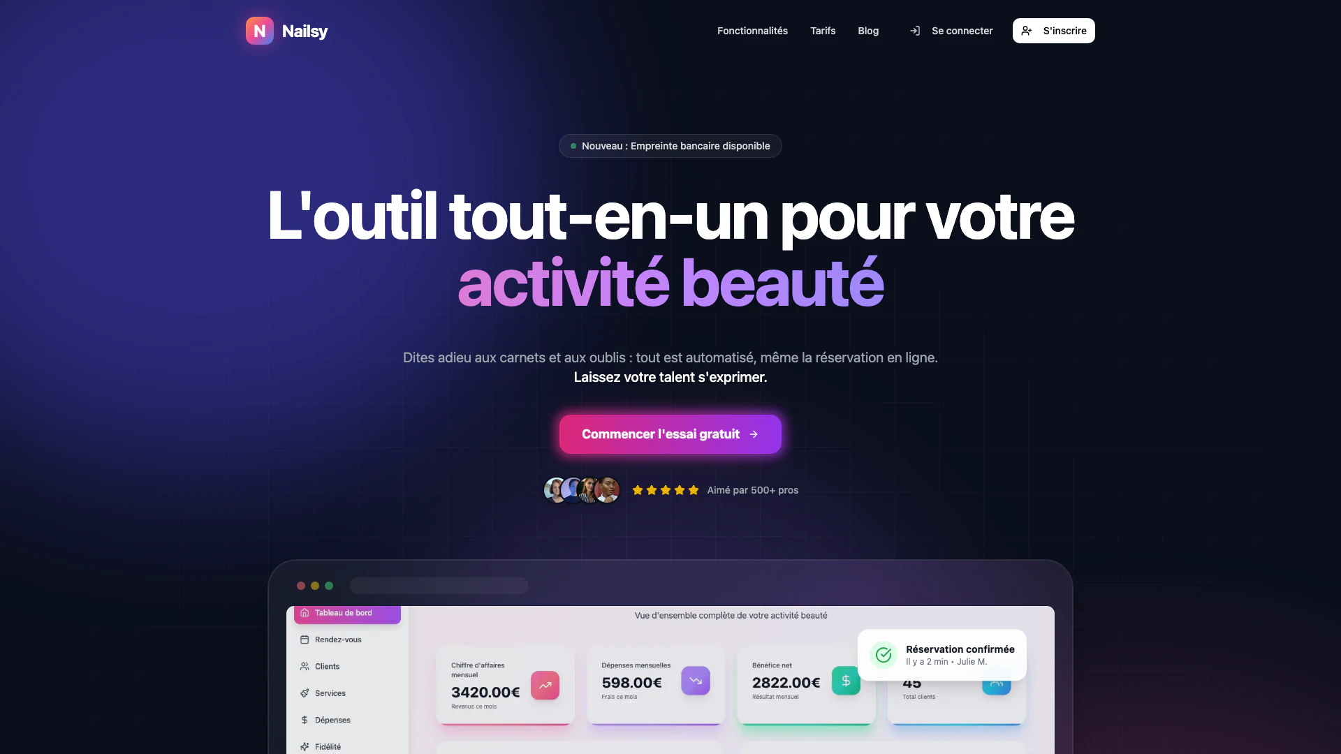 - 通過官方網站註冊 Nailsy 帳戶並開始您的 14 天免費試用。