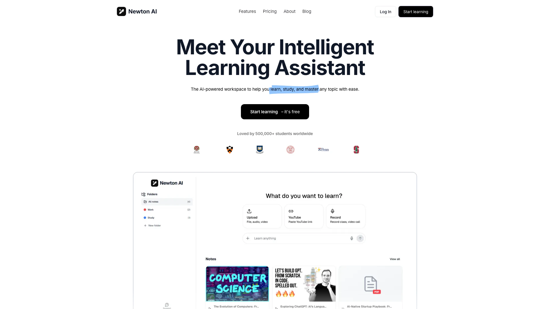 免費開始使用Newton AI。立即將學習材料轉換為筆記、測驗和閃卡。