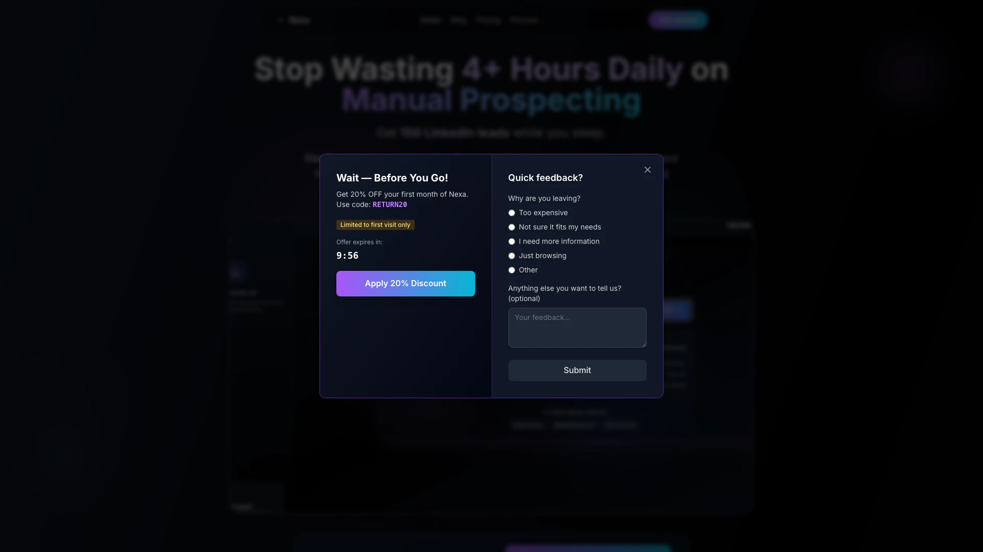 - 銷售潛在客戶開發:使用 Nexaleadgen 為您的銷售管道填充合格的潛在客戶,讓您的團隊專注於成交。