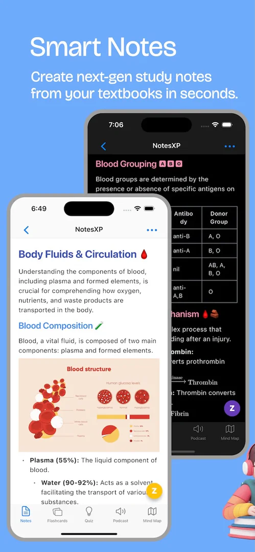 只需上傳教科書頁面的照片或PDF,NotesXP將利用最新的AI模型生成學習筆記、抽認卡、測驗等。然後,您可以根據自己的學習風格自定義這些材料。