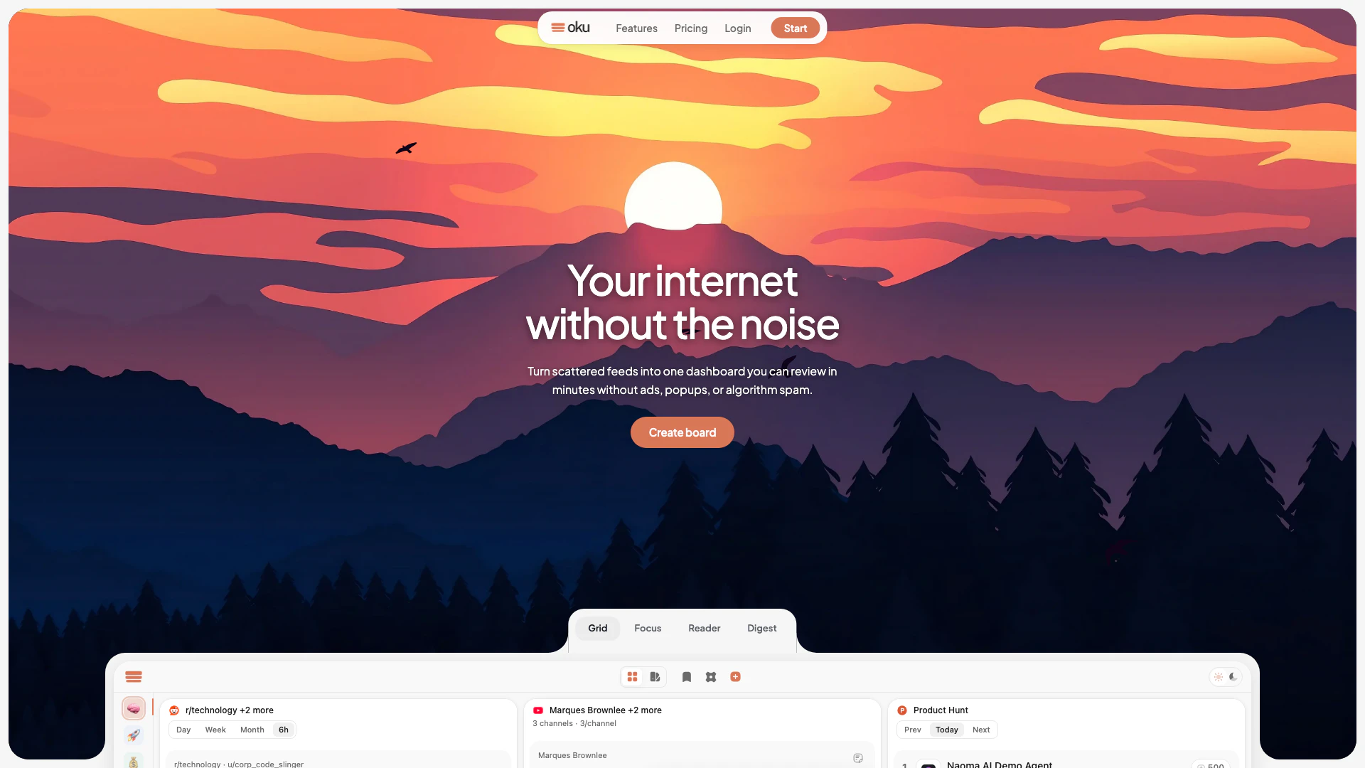 使用 Oku 的無廣告儀表板簡化您的線上閱讀。