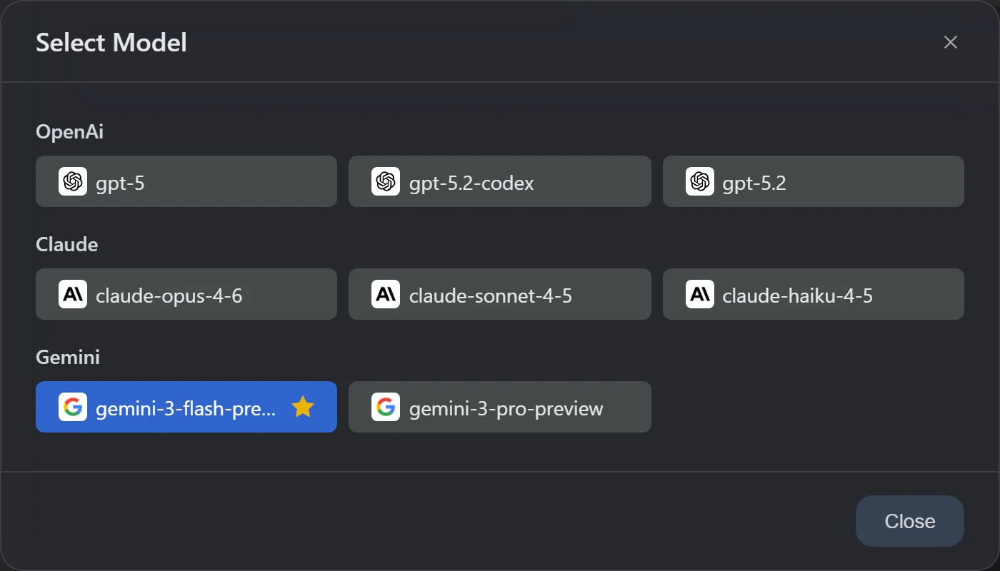 - 多模型 AI 聊天介面,可在各種 AI 模型之間切換。