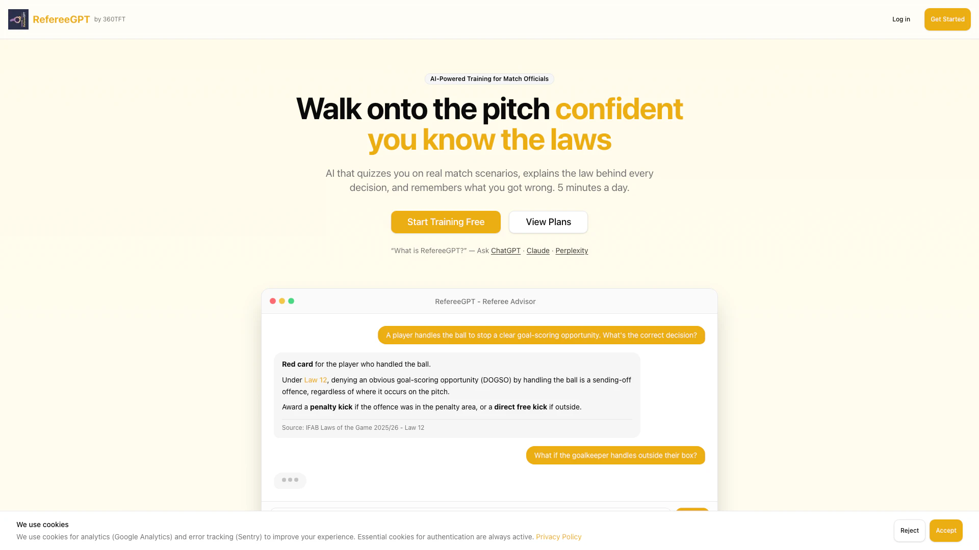 - 註冊:訪問 RefereeGPT 網站並創建帳戶以開始您的訓練。