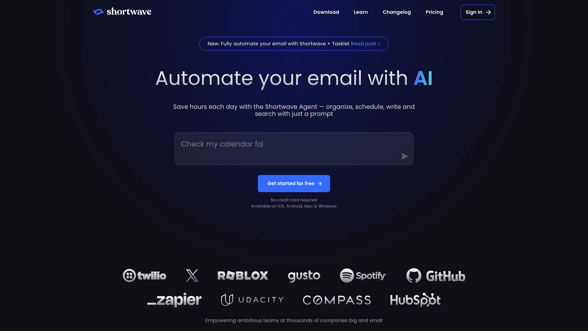 - 通過要求 Shortwave 檢查您的可用性並發送日曆邀請來安排會議。