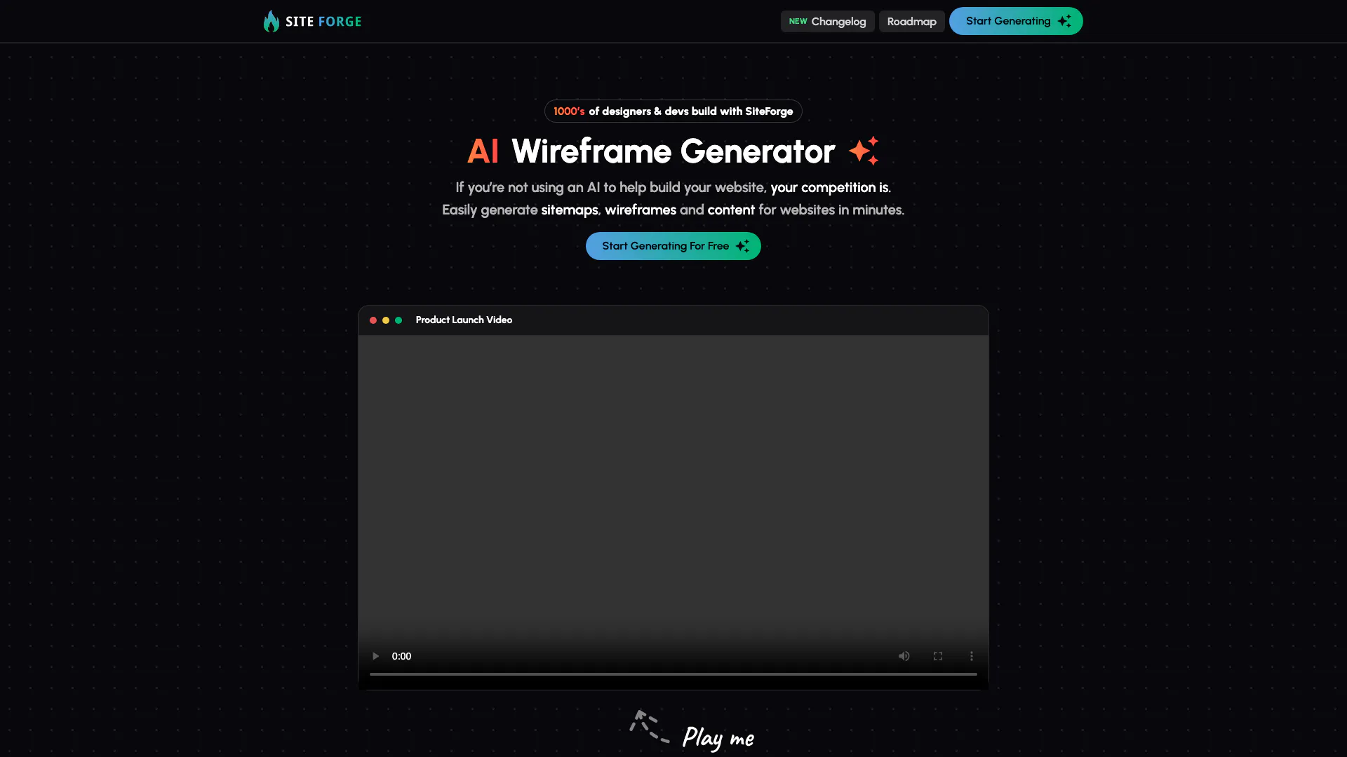 - AI線框生成: SiteForge的AI線框生成器允許用戶快速創建自定義線框,大大加快設計過程。