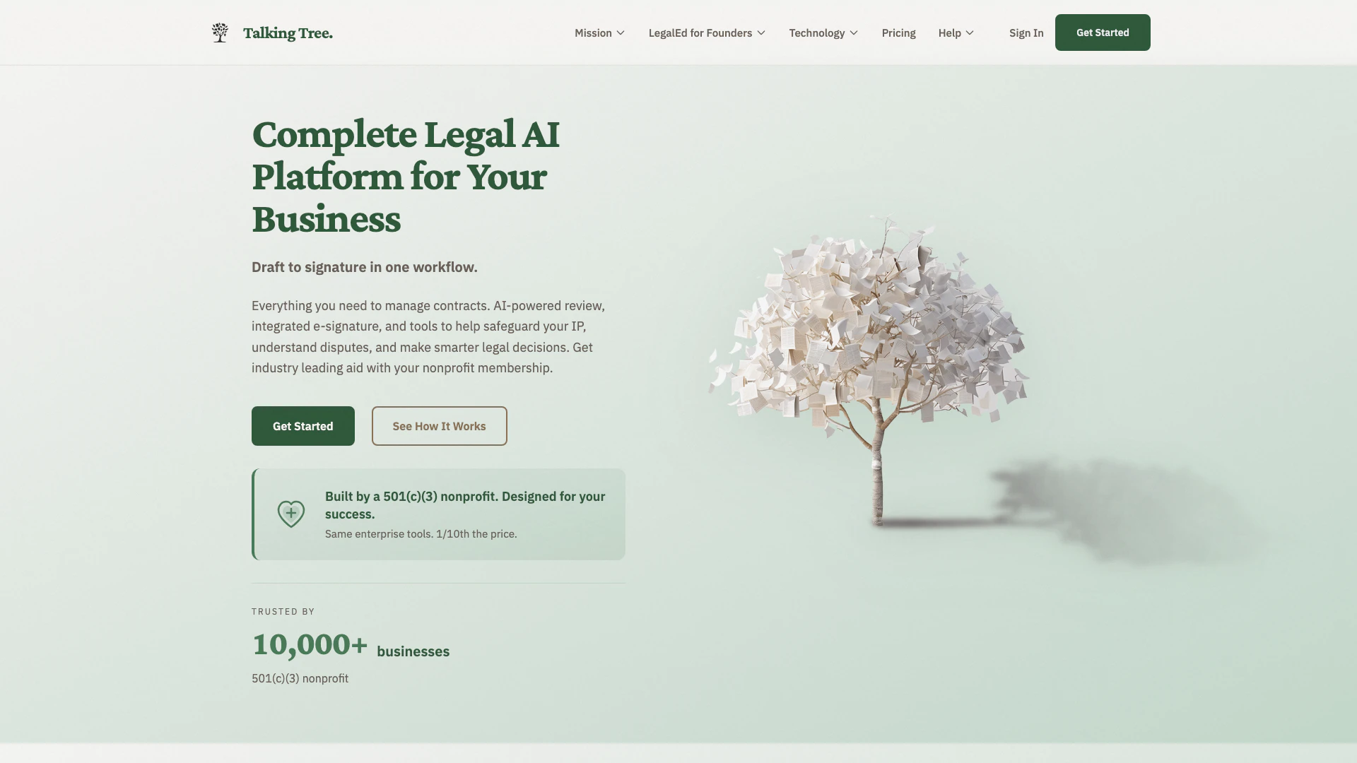 - Affordable Nonprofit Pricing: As a 501(c)(3) nonprofit, Talkingtree provides legal services at 50-80% below market rates, ensuring accessibility for startups and SMBs.