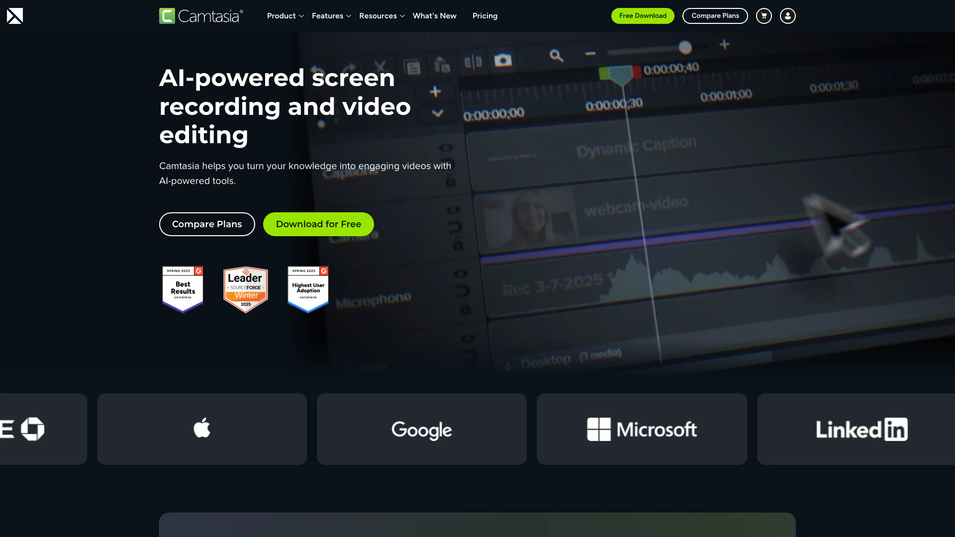下載並免費使用完整的 Camtasia 編輯器。訪問所有編輯功能,但導出的視頻將包含水印,直到您升級。
