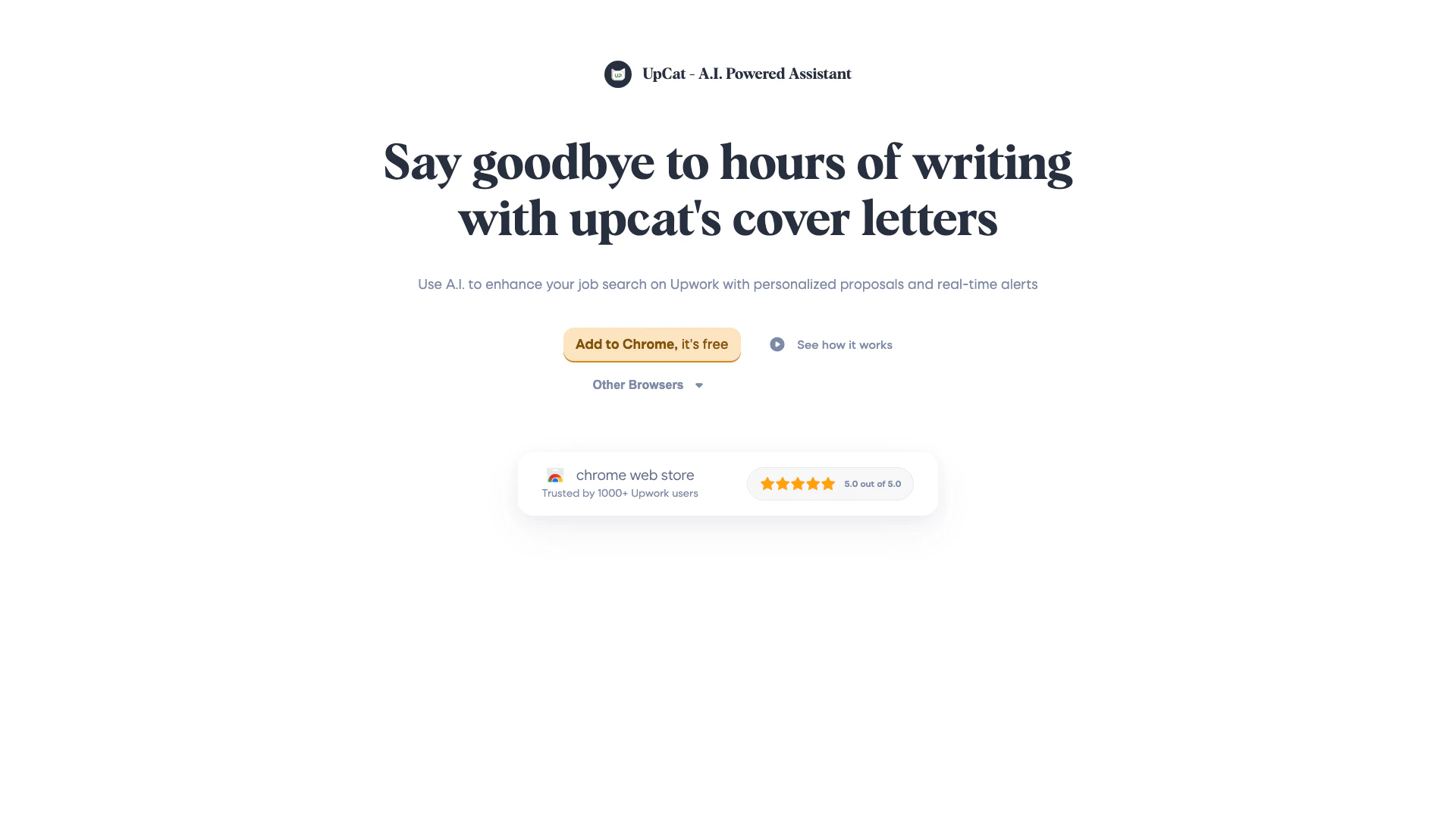 Upcat 專為使用 Upwork 尋找工作機會的自由職業者和求職者設計。對於那些希望提升求職申請過程、節省撰寫提案時間並保持對相關工作職位的更新的人來說,這尤其有益。無論您是經驗豐富的自由職業者還是剛接觸 Upwork,Upcat 都提供了有價值的工具來幫助您在求職中取得成功。