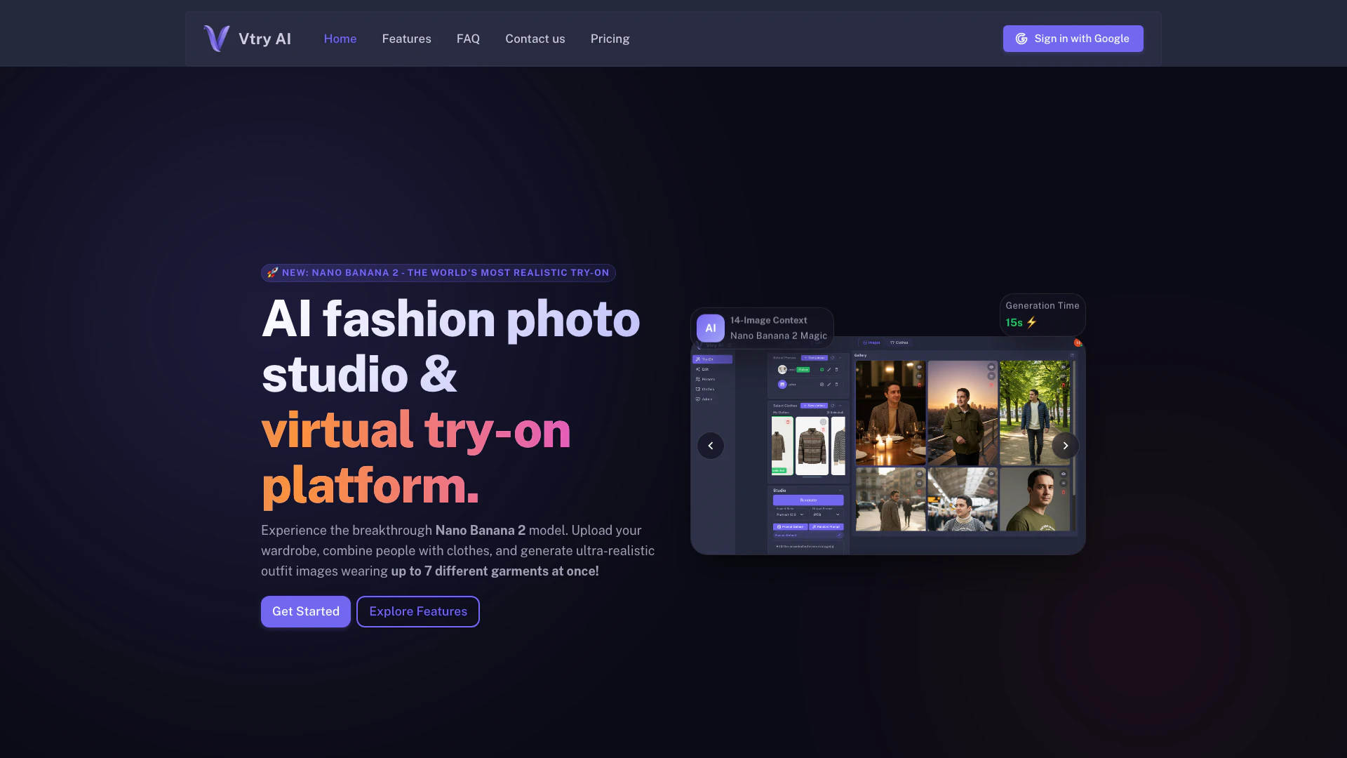 - 超現實服裝生成: Vtry AI使用先進的Nano Banana 2模型生成超現實的服裝圖像,一次最多可生成7件服裝,增強時尚展示的視覺吸引力。