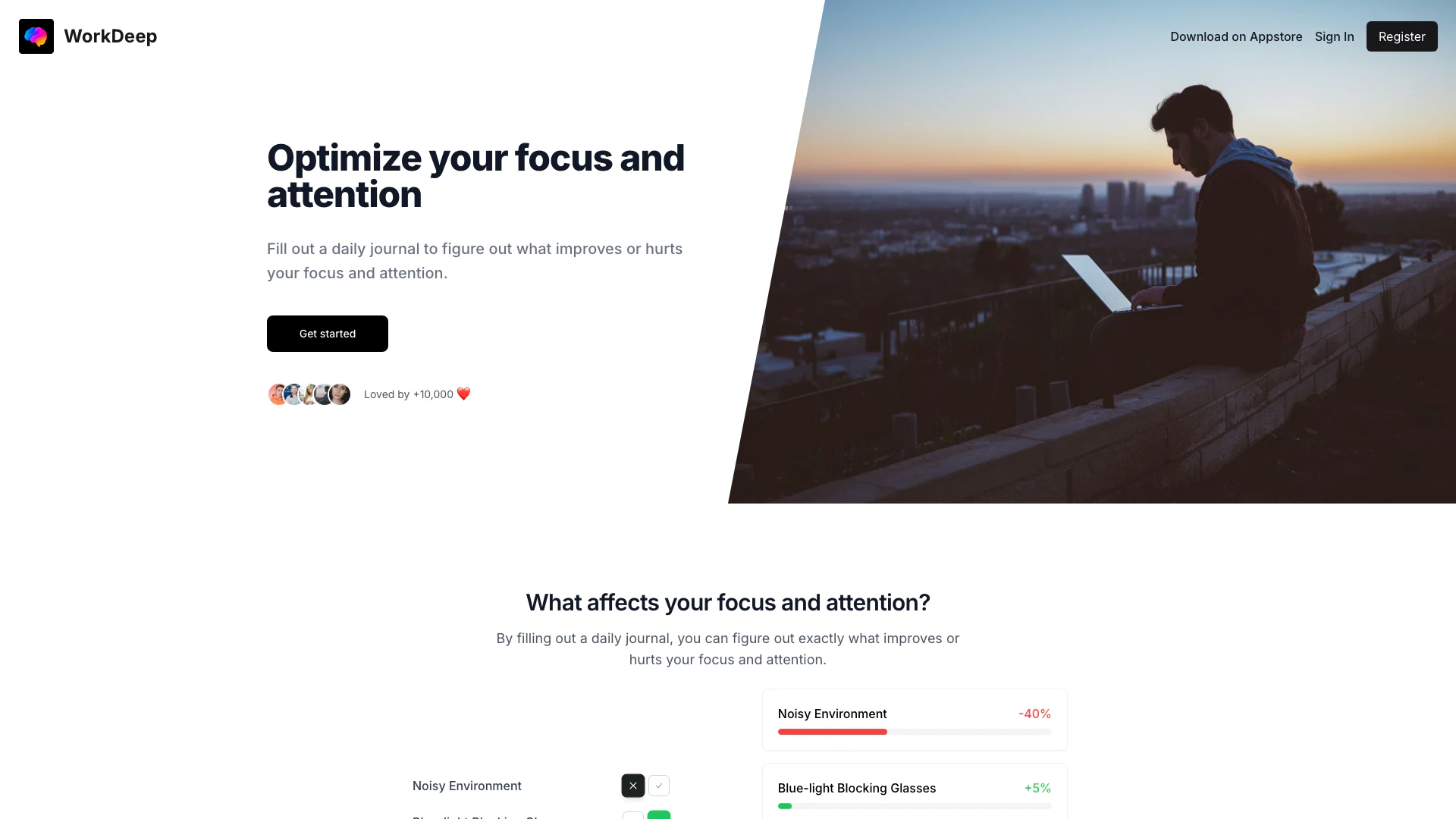 Workdeep 是一款健康監測和影響追蹤工具,旨在優化專注力和注意力。它使用戶能夠保持每日日誌,幫助識別增強或妨礙其專注水平的因素。通過分析個人數據,用戶可以制定策略來提高生產力,達到深度工作的狀態,最終在個人和專業環境中獲得更好的表現。