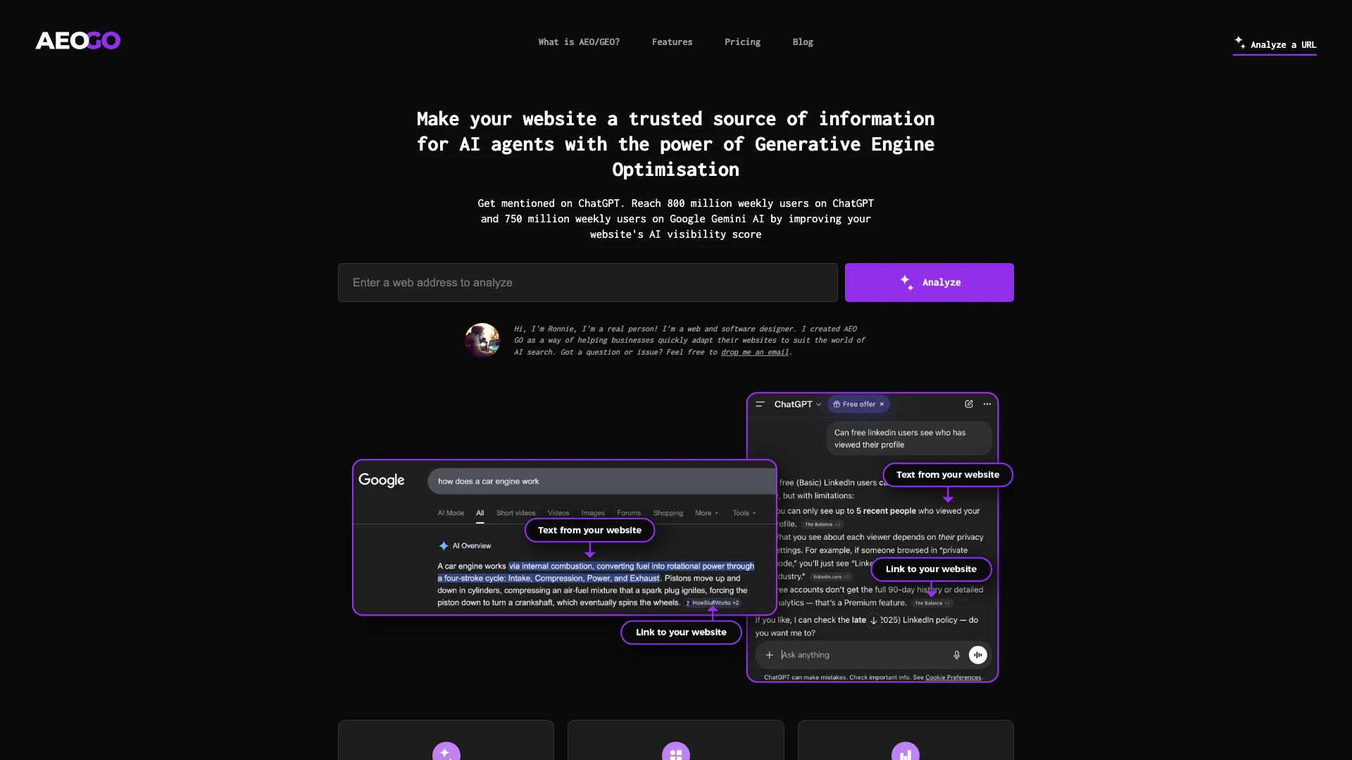 - Nhập URL trang web của bạn vào bảng điều khiển Aeo Go để bắt đầu quá trình tối ưu hóa.