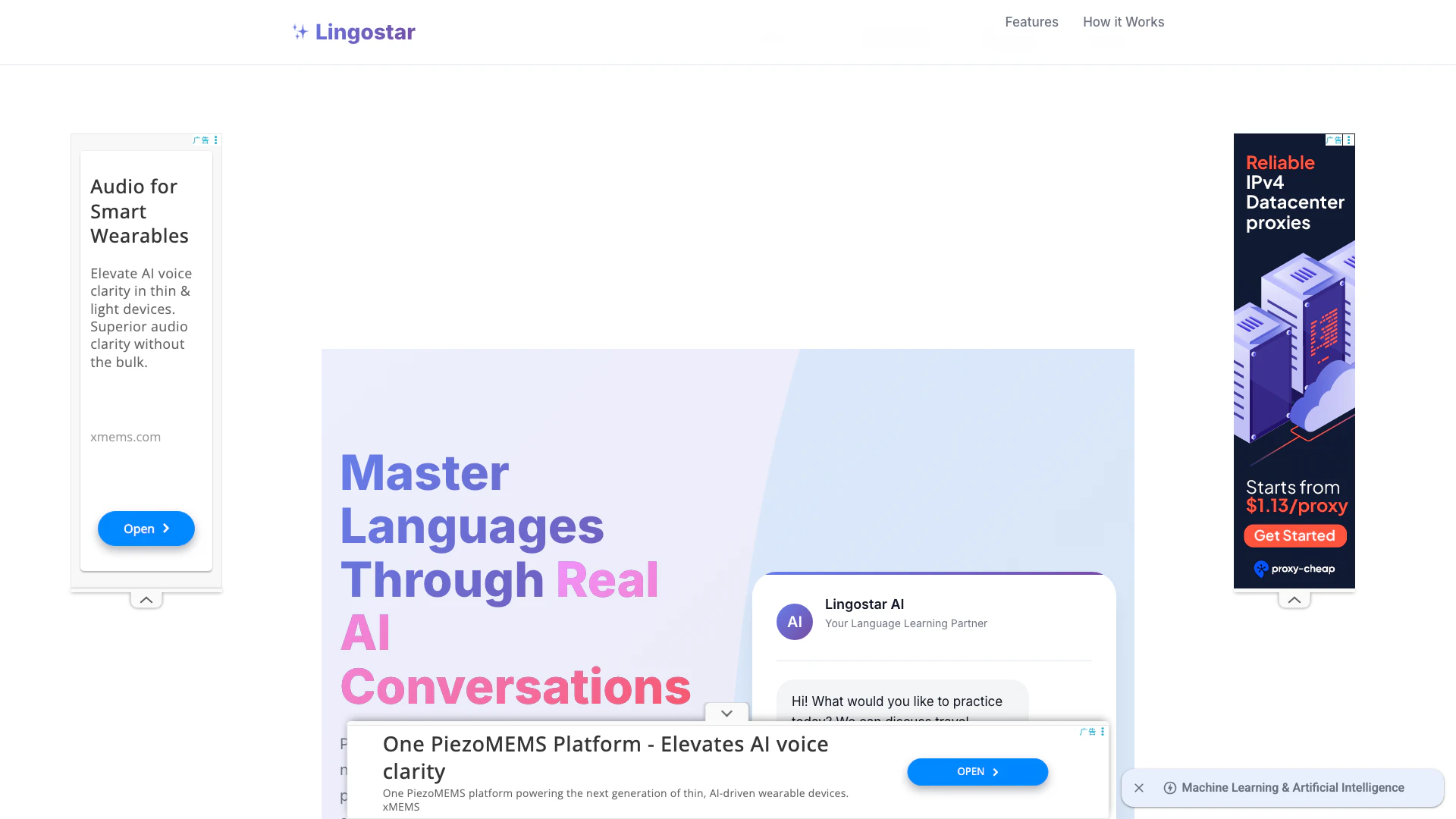 AI Language Learning là một công cụ sáng tạo được thiết kế để giúp người dùng luyện tập nói tiếng Anh, tiếng Tây Ban Nha và tiếng Pháp thông qua các cuộc trò chuyện tự nhiên với một đối tác trò chuyện AI tiên tiến. Nền tảng này tập trung vào việc xây dựng sự tự tin, cải thiện phát âm và đạt được sự lưu loát bằng cách tham gia vào các trải nghiệm đối thoại nhập vai. Với công nghệ học ngôn ngữ tiên tiến, Lingostar cho phép người học nâng cao từ vựng, ngữ pháp và kỹ năng ngôn ngữ tổng thể thông qua tương tác thời gian thực.