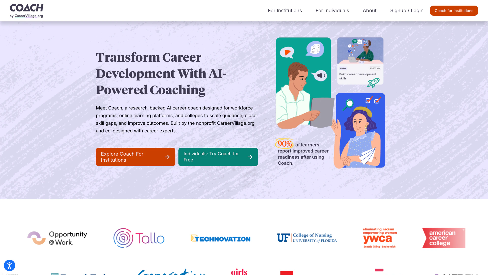 Huấn luyện viên kết hợp các mô hình ngôn ngữ lớn với các hoạt động có cơ sở nghiên cứu và một cơ sở dữ liệu hướng dẫn nghề nghiệp toàn diện để thúc đẩy sự phát triển nghề nghiệp. Hãy nghĩ về Huấn luyện viên như một nguồn tài nguyên huấn luyện nghề nghiệp kỹ thuật số rộng lớn, giống như kiến thức của một cố vấn nghề nghiệp, nhưng lớn hơn nhiều và có sẵn 24/7. Được xây dựng với sự hợp tác của một liên minh các tổ chức phi lợi nhuận, các cơ sở giáo dục và các tổ chức phát triển lực lượng lao động, Huấn luyện viên cung cấp hướng dẫn nghề nghiệp được hỗ trợ bởi chuyên gia thông qua các hoạt động có cấu trúc, kết nối người học với thông tin nghề nghiệp chất lượng cao, cung cấp các công cụ hỗ trợ AI cho việc xem xét sơ yếu lý lịch, luyện phỏng vấn và đánh giá sự sẵn sàng nghề nghiệp, và điều chỉnh cho từng người dùng, cung cấp các khuyến nghị phù hợp với mục tiêu nghề nghiệp và dữ liệu thị trường lao động thực tế.