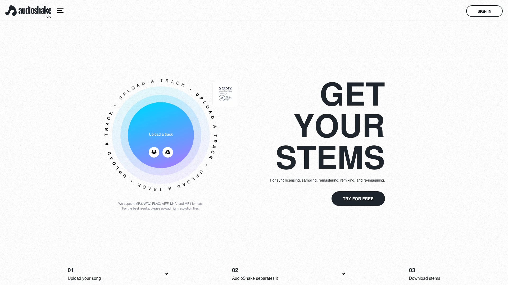 - Audioshake tách nó ra: Nền tảng xử lý bản nhạc của bạn, sử dụng các thuật toán tiên tiến để tách nó thành các stem riêng biệt.