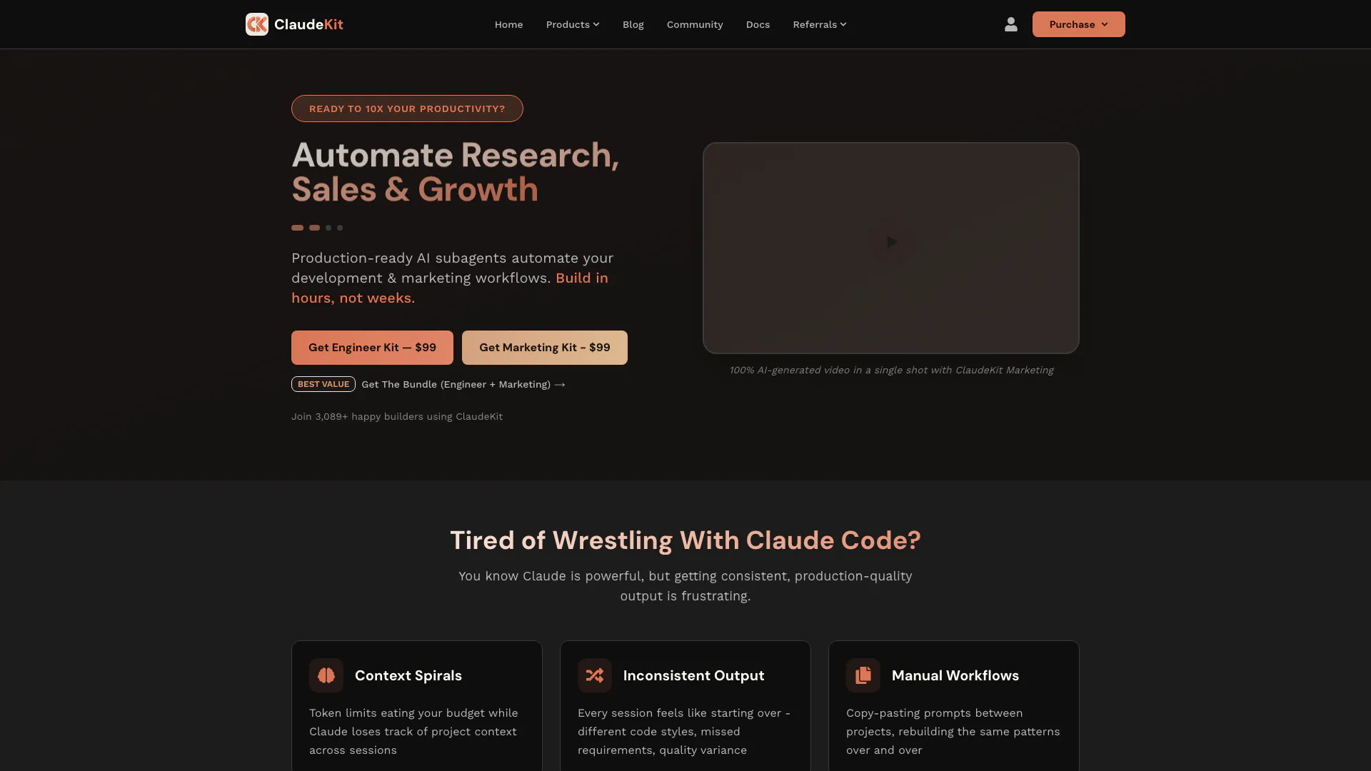 - AI Subagents sẵn sàng sản xuất: Claudekit cung cấp AI Subagents sẵn sàng sản xuất, tự động hóa quy trình phát triển và tiếp thị, giúp giao hàng dự án nhanh hơn.