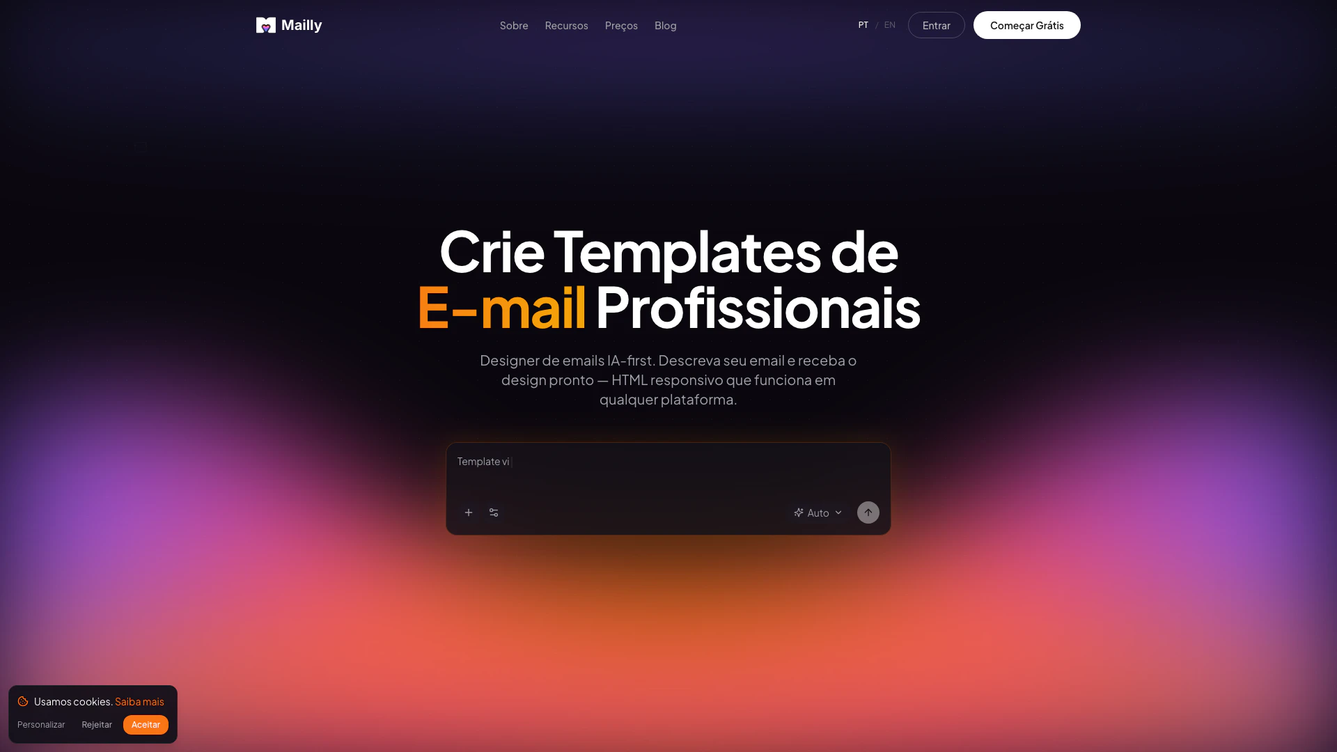 Mailly là một Trình tạo Email AI cho phép người dùng tạo các mẫu email chuyên nghiệp bằng cách mô tả nhu cầu của họ bằng ngôn ngữ tự nhiên. AI tạo ra một thiết kế HTML phản hồi hoàn chỉnh chỉ trong 15 giây.