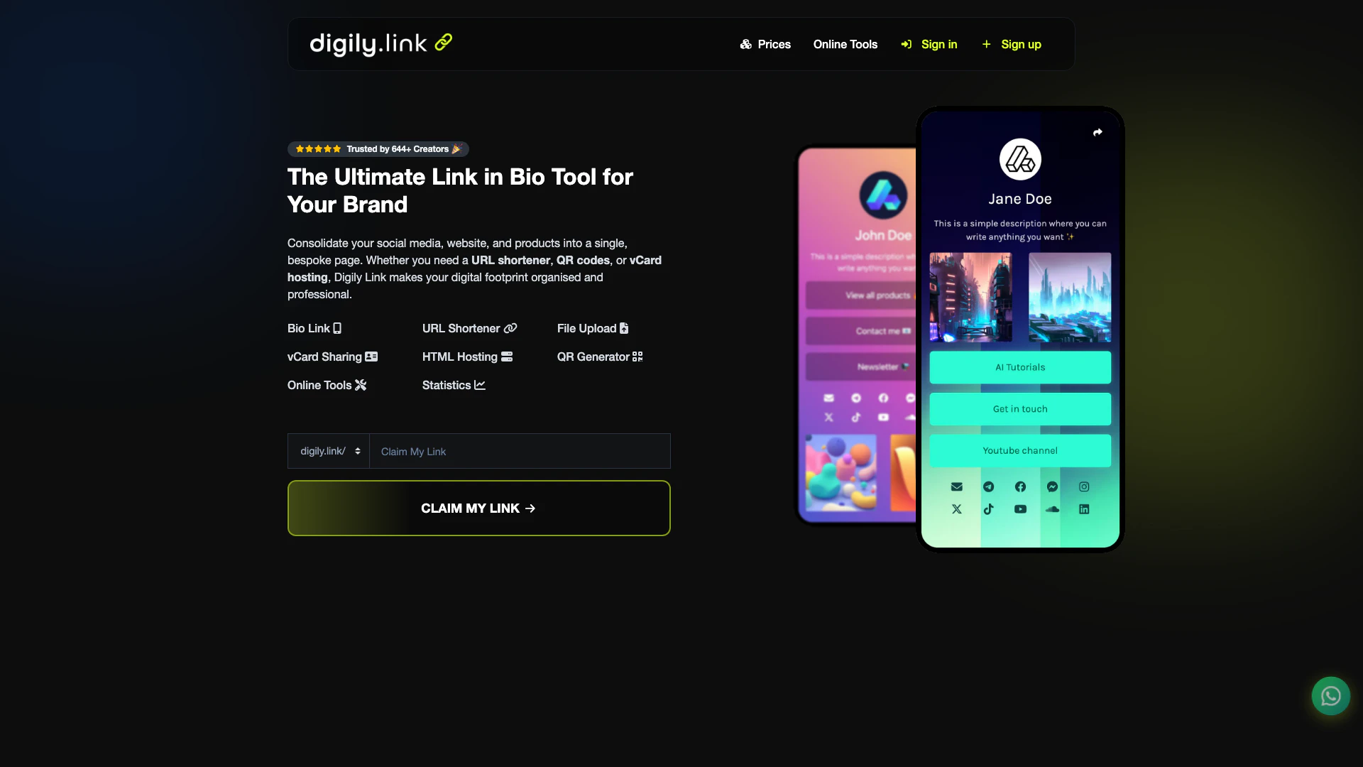 Digily Link là một nền tảng quản lý liên kết chuyên nghiệp được thiết kế để đơn giản hóa và nâng cao sự hiện diện kỹ thuật số của bạn. Nó cho phép người dùng hợp nhất nhiều liên kết thành một liên kết tiểu sử hoàn toàn tùy chỉnh, giúp dễ dàng chia sẻ nội dung qua nhiều kênh khác nhau. Điều này đặc biệt có giá trị cho cá nhân và doanh nghiệp muốn tối ưu hóa hồ sơ mạng xã hội hoặc nỗ lực tiếp thị trực tuyến của họ. Nền tảng cũng cung cấp phân tích chi tiết về số lần nhấp vào liên kết, giúp người dùng hiểu rõ hơn về hành vi và sở thích của khán giả. Với hỗ trợ cho tên miền thương hiệu và các tùy chọn cá nhân hóa nâng cao, Digily Link cho phép người dùng tạo ra một danh tính kỹ thuật số đáng nhớ và hiệu quả.
