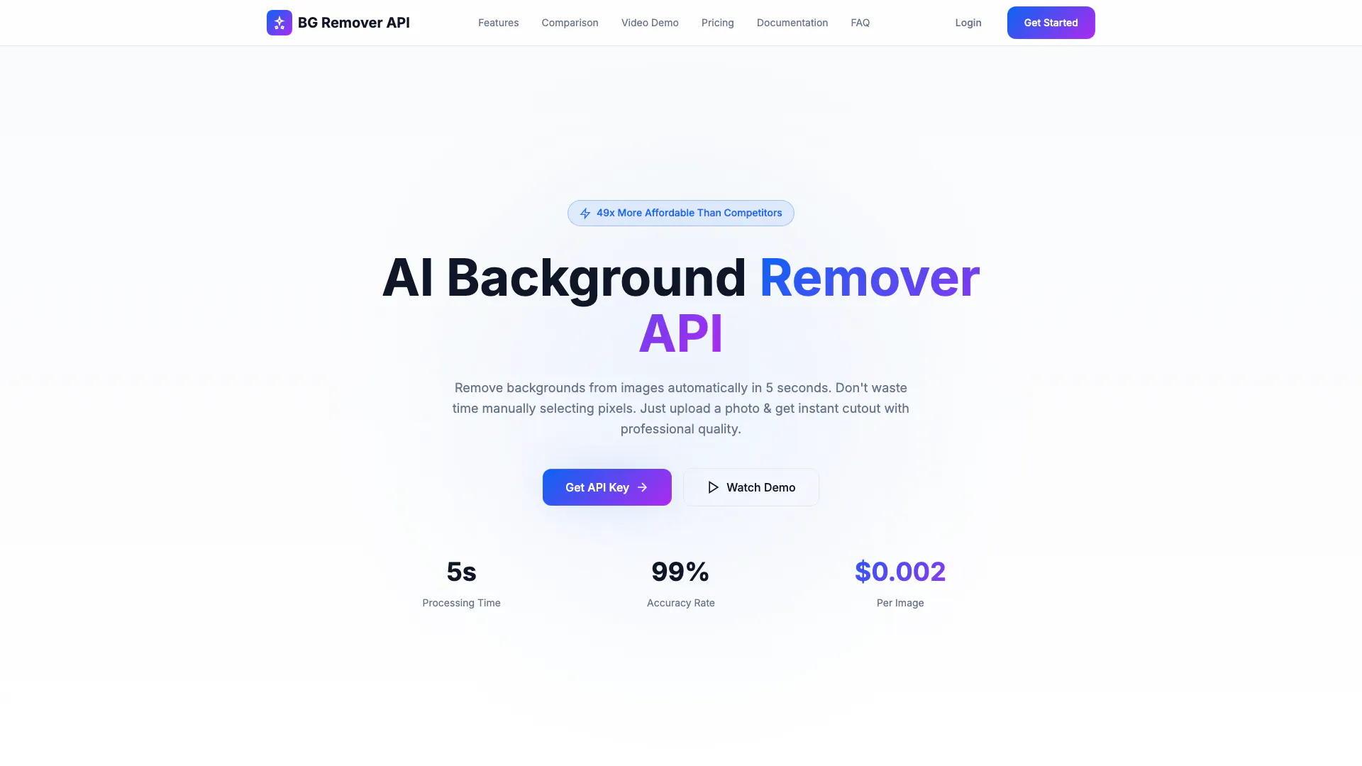 Xóa nền hình ảnh tự động chỉ trong 5 giây với một cú nhấp chuột. Đừng tốn hàng giờ để chọn từng pixel. Tải lên ảnh của bạn ngay bây giờ và xem điều kỳ diệu.