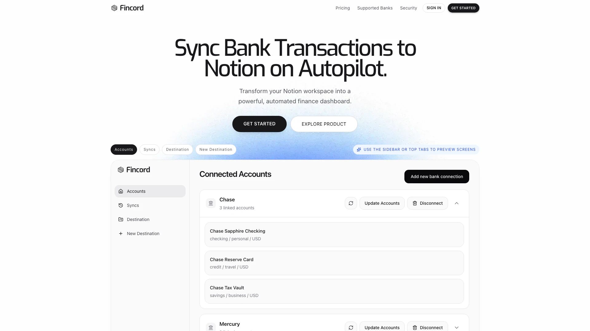 - Đồng bộ giao dịch tự động: Fincord tự động đồng bộ các giao dịch ngân hàng với Notion, đảm bảo bảng điều khiển tài chính của bạn luôn được cập nhật.