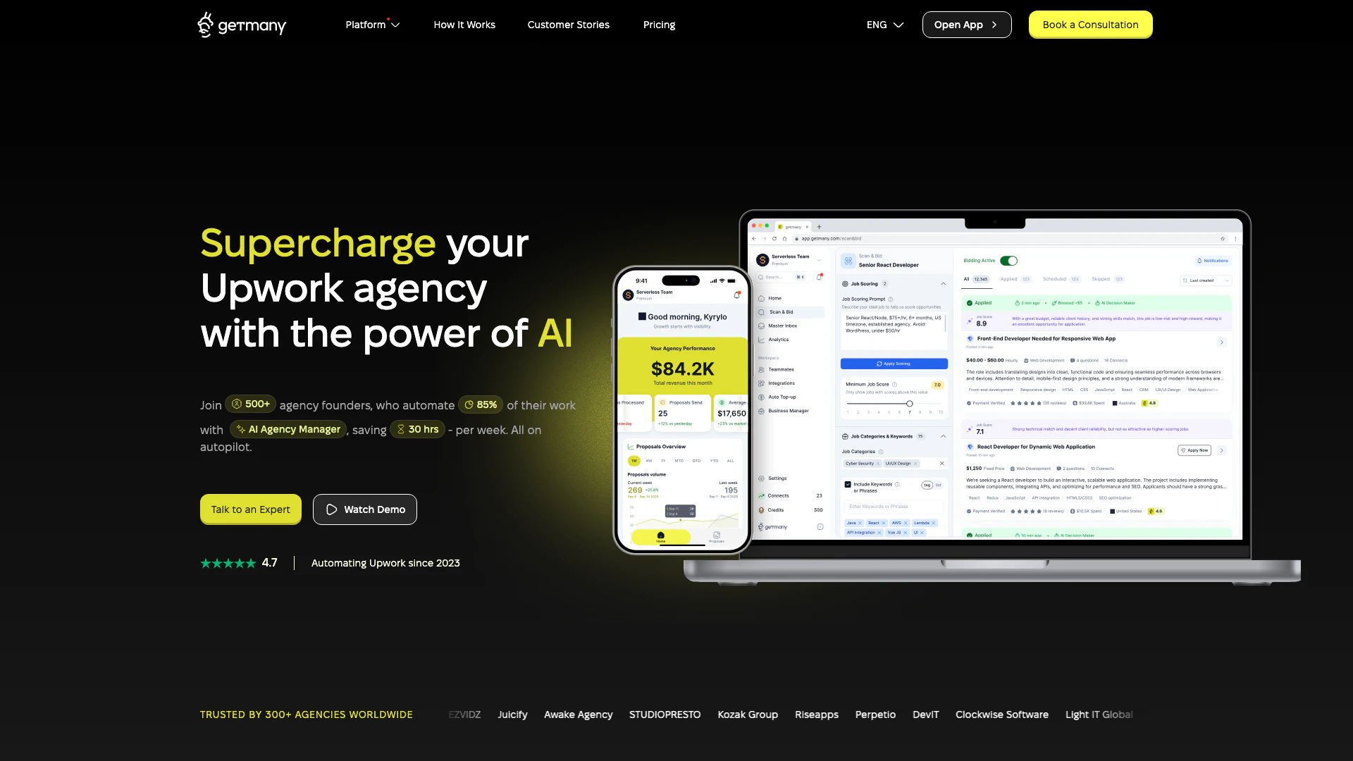- Hệ thống Đấu thầu Tự động: Getmany cung cấp một hệ thống đấu thầu tự động cho phép các đại lý gửi từ 30 đến 50 đấu thầu chất lượng mỗi ngày, làm tăng đáng kể cơ hội giành được công việc trên Upwork.