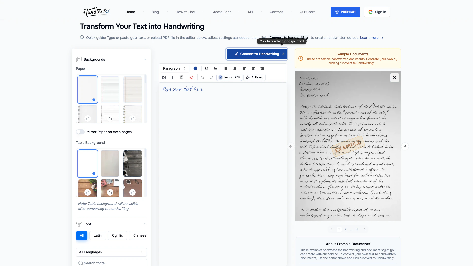 - Phong cách viết tay tùy chỉnh: HandtextAI cung cấp 90 kiểu chữ viết tay và nền giấy có thể tùy chỉnh, cho phép người dùng tạo ra những ghi chú viết tay cá nhân hóa.