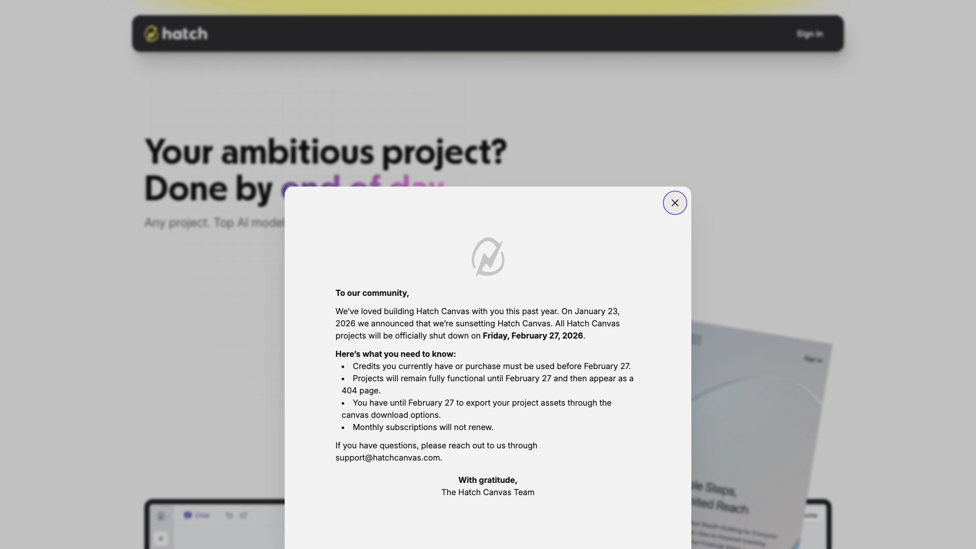 Hatchcanvas là một không gian làm việc AI tất cả trong một được thiết kế để tối ưu hóa quản lý dự án và nâng cao năng suất. Nó kết hợp nhiều mô hình AI hàng đầu vào một không gian làm việc trực quan duy nhất, cho phép người dùng quản lý tài liệu, hình ảnh, mã và dữ liệu mà không mất đi ngữ cảnh. Với Hatchcanvas, người dùng có thể loại bỏ sự phiền phức khi phải chuyển đổi giữa nhiều công cụ khác nhau, như ChatGPT, Google Suite và VS Code, từ đó giúp họ tập trung vào các dự án và hoàn thành nhiệm vụ một cách hiệu quả. Nền tảng này được thiết kế cho những người sáng tạo và xây dựng, những người muốn tối đa hóa sản lượng của họ và đẩy ranh giới của những gì có thể.