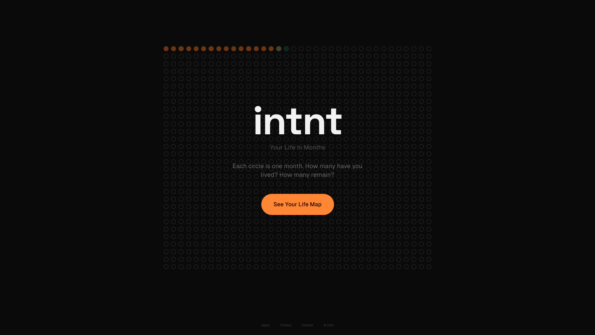 Intnt là một công cụ hình dung cuộc sống độc đáo cho phép người dùng thấy cuộc sống của họ được thể hiện theo tháng. Mỗi vòng tròn trong giao diện tượng trưng cho một tháng, cung cấp một hình ảnh rõ ràng về số tháng đã sống và số tháng còn lại. Cách tiếp cận sáng tạo này được lấy cảm hứng từ khái niệm 'Cuộc sống của bạn trong các tuần' của Tim Urban, mang đến một cách đơn giản nhưng sâu sắc để suy ngẫm về các mục tiêu cuộc sống và quản lý thời gian. Bằng cách tập trung vào một mục tiêu duy nhất, người dùng có thể có cái nhìn sâu sắc về những gì thực sự quan trọng trong cuộc sống của họ, khiến Intnt trở thành một công cụ thiết yếu cho sự phát triển và nhận thức cá nhân.